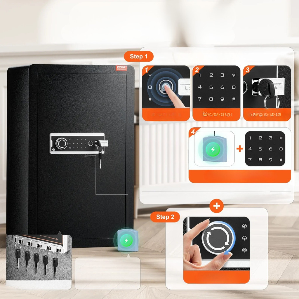 Ez a 113 literes digitális bútor széf ujjlenyomatos azonosítással prémium megoldást kínál készpénz, ékszer, dokumentum és egyéb értéktárgy biztonságos tárolására. A modern háromféle nyitási rendszer, az erős acélszerkezet és az 5 pontos reteszelés magas szintű védelmet biztosít otthon, irodában vagy szállodai környezetben.