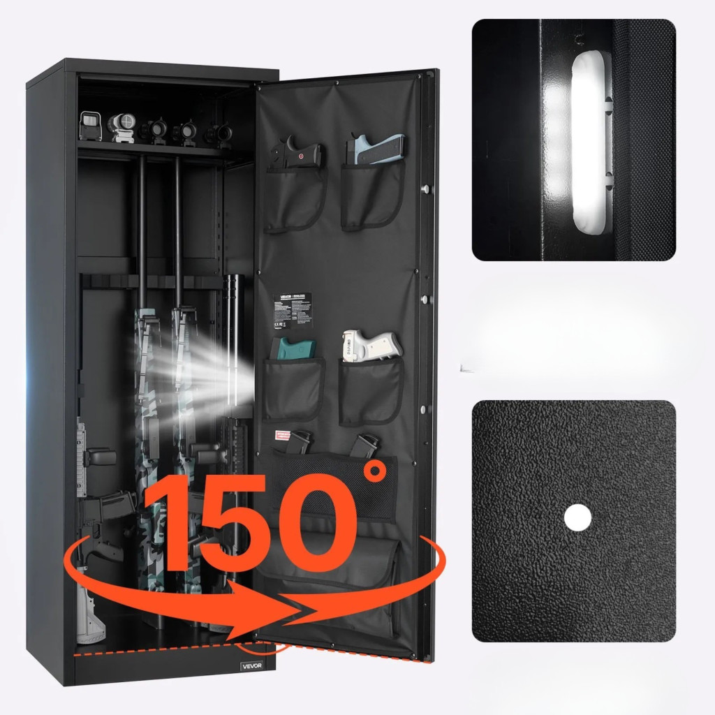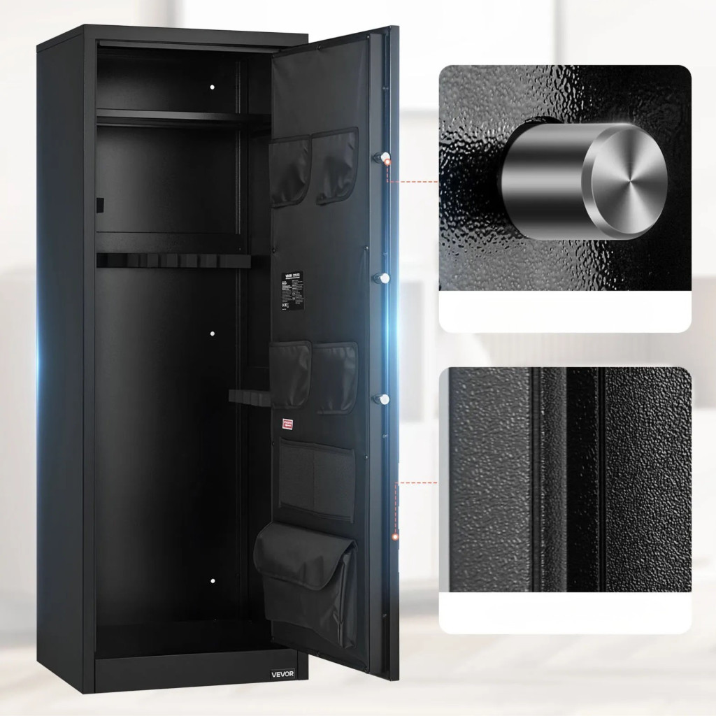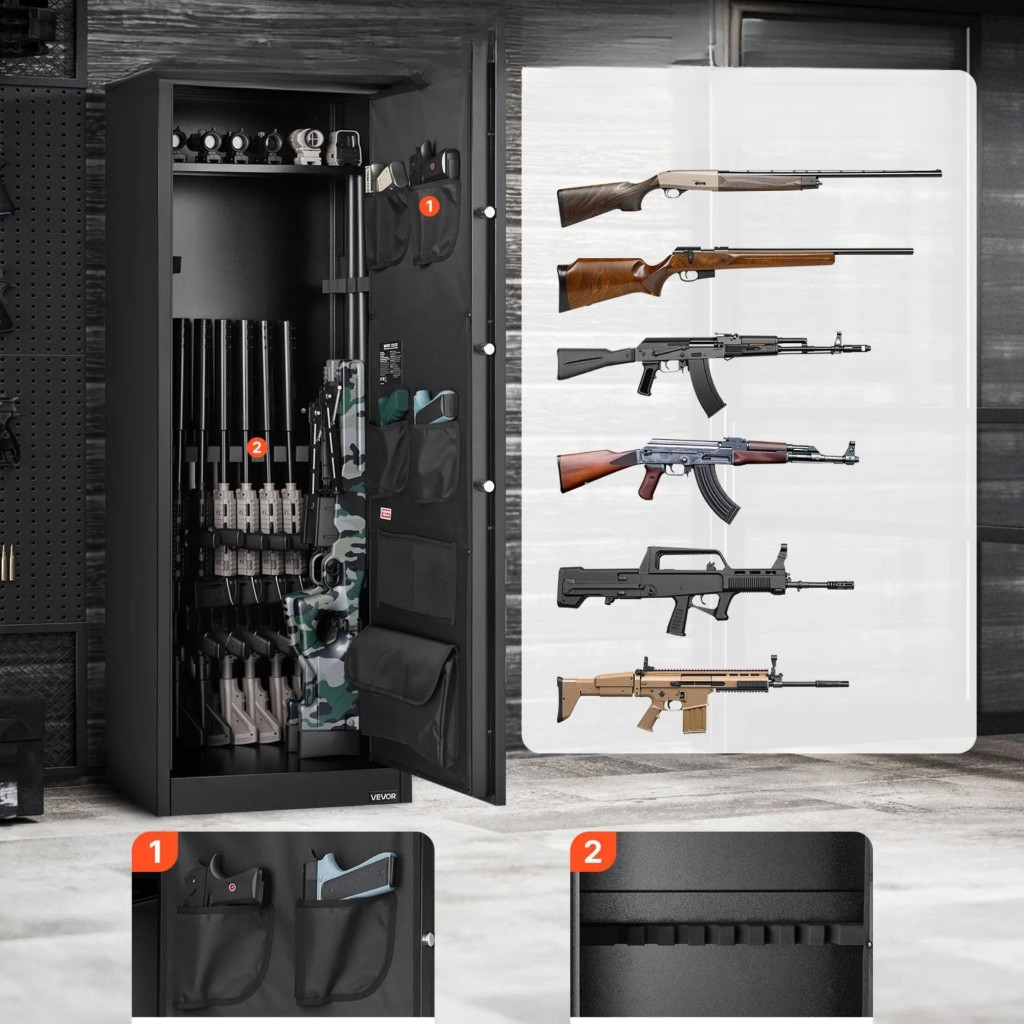 Ez a 10–12 fegyver tárolására alkalmas, nagyméretű fegyverszekrény ideális választás gyűjtők és több fegyverrel rendelkező tulajdonosok számára. A robusztus acélszerkezet, az intelligens digitális zár és a praktikus belső rendszerezés magas szintű biztonságot és kényelmes használatot biztosít.