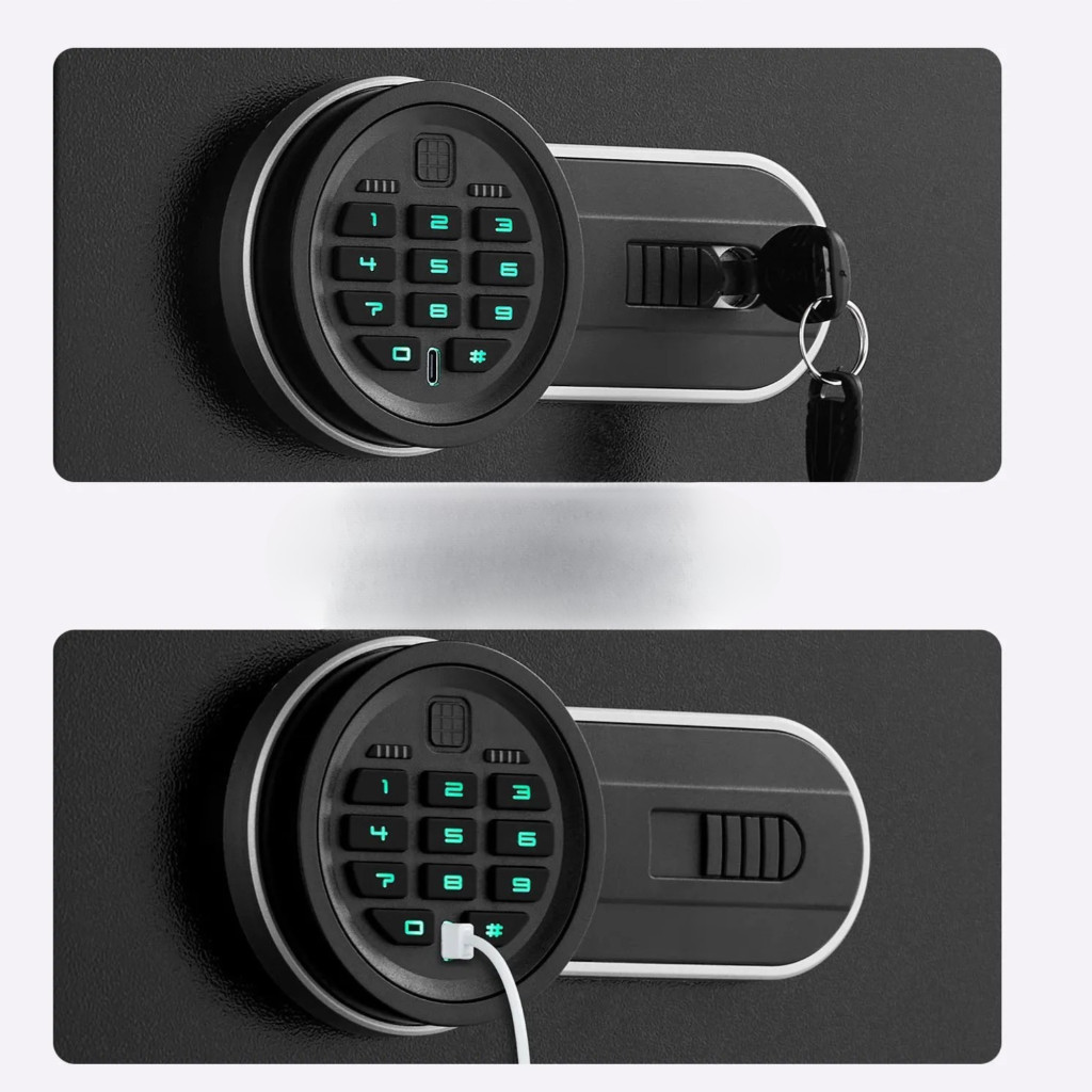 A szekrény modern, 9 számjegyű érintőpaneles zárral van felszerelve.