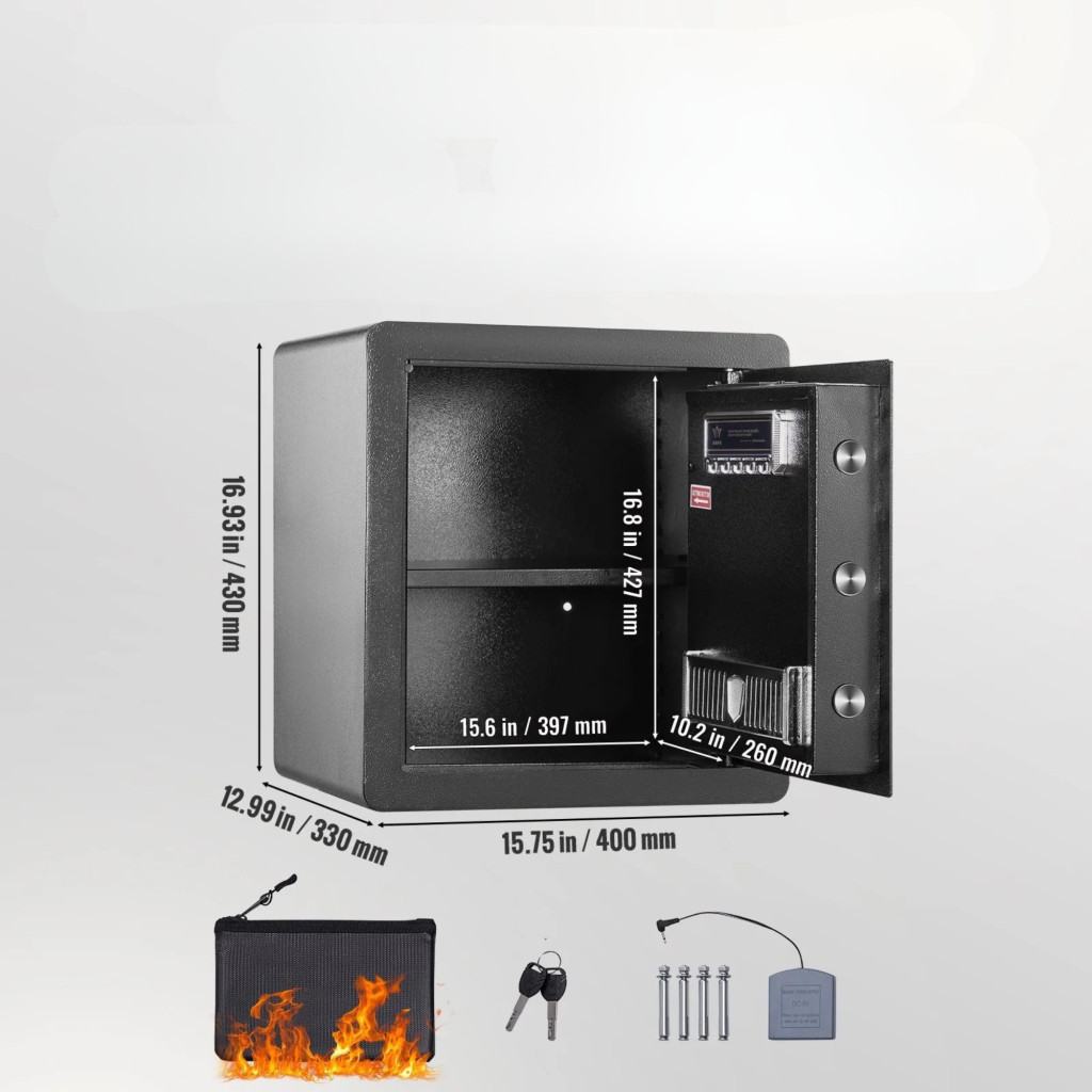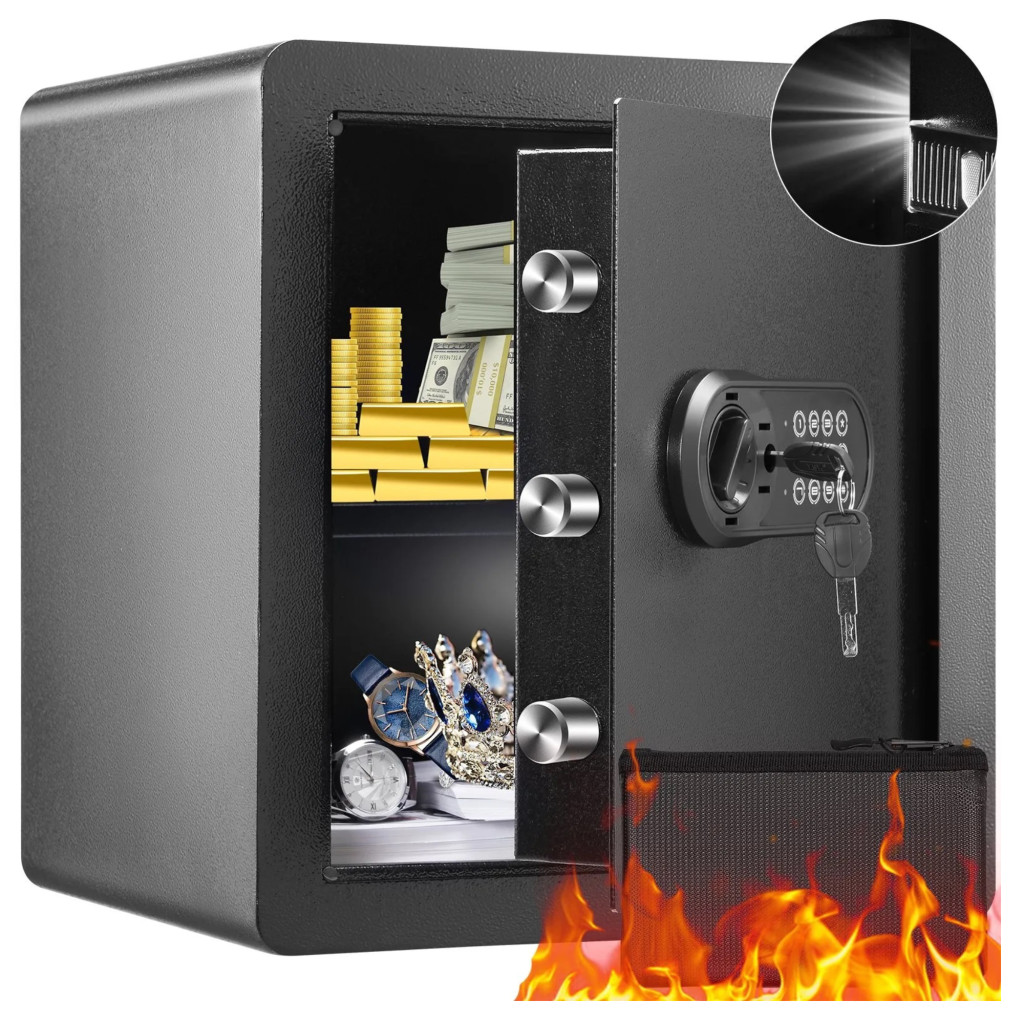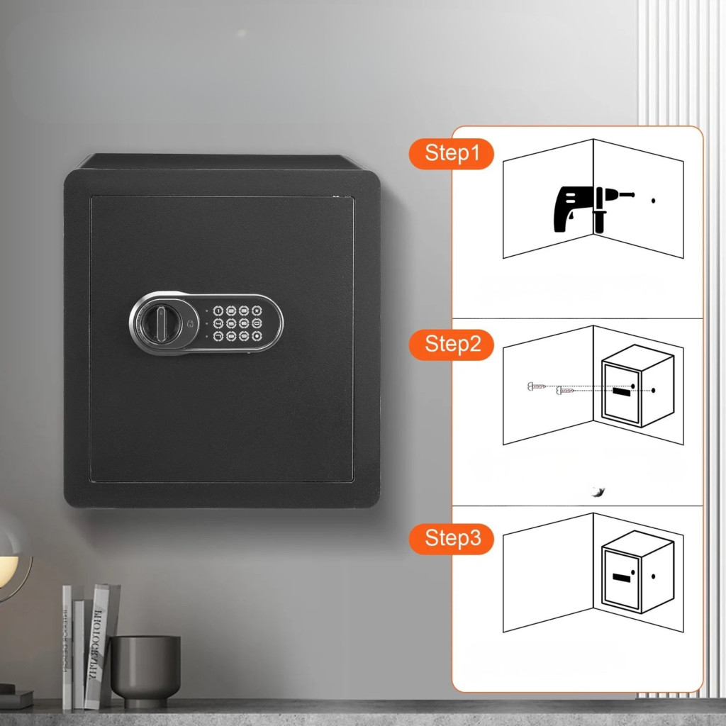 Fali széf 51 literes digitális falba építhető széf kulcsos és jelszavas nyitással, tűzálló pénztároló tasakkal