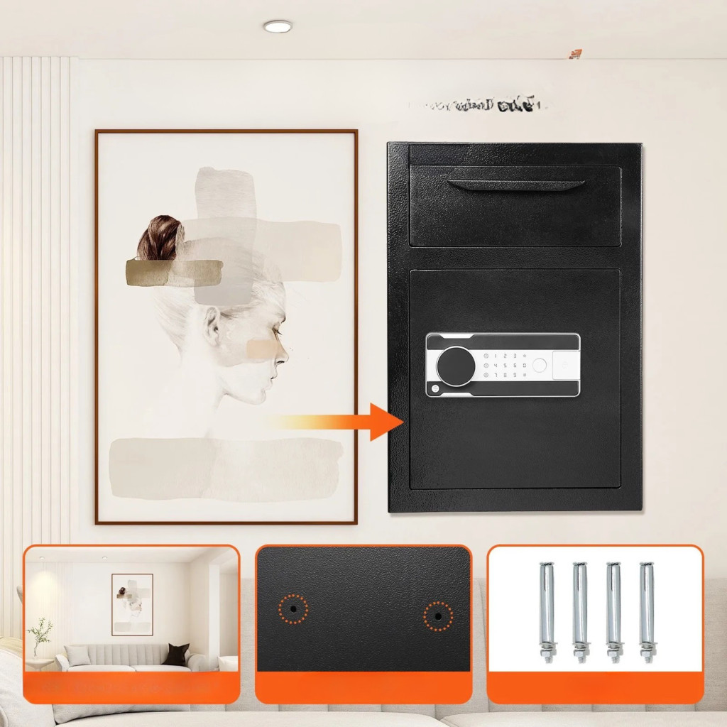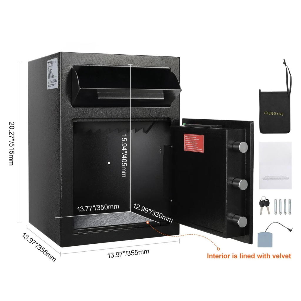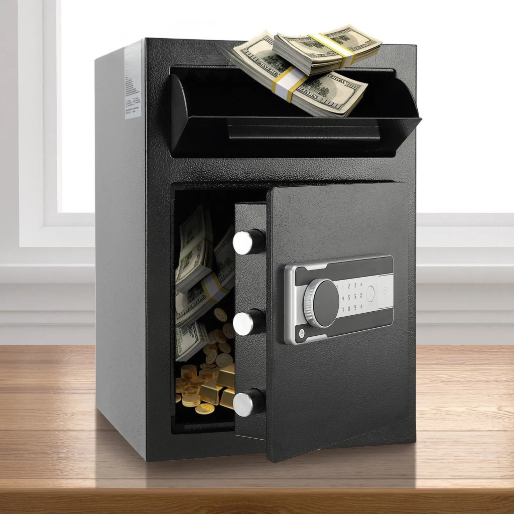 Széf 65 literes bedobónyílásos depószéf 355x355x515 mm elektronikus kódzárral és vésznyitó kulccsal