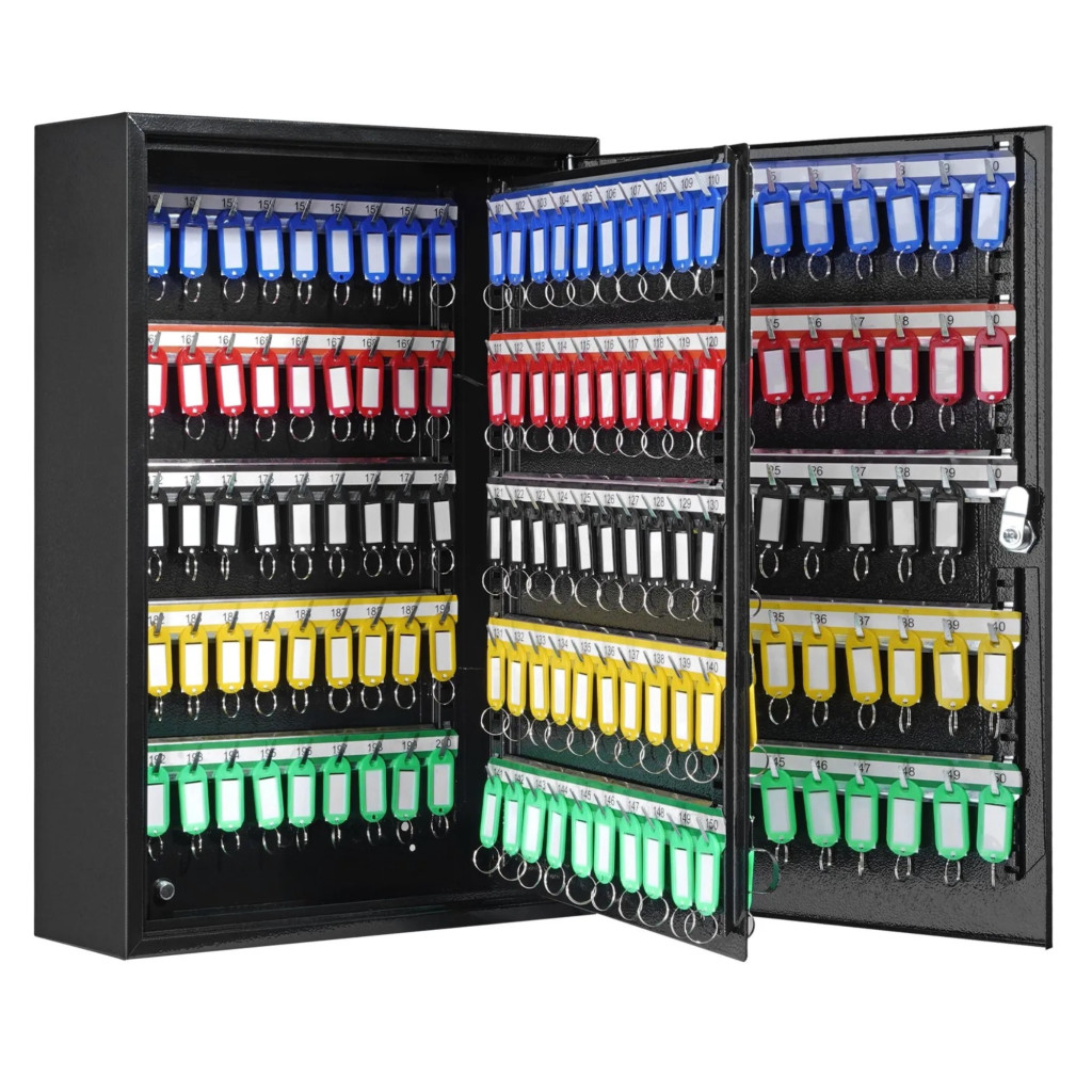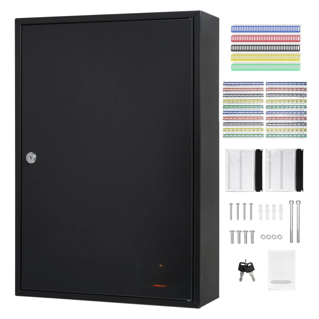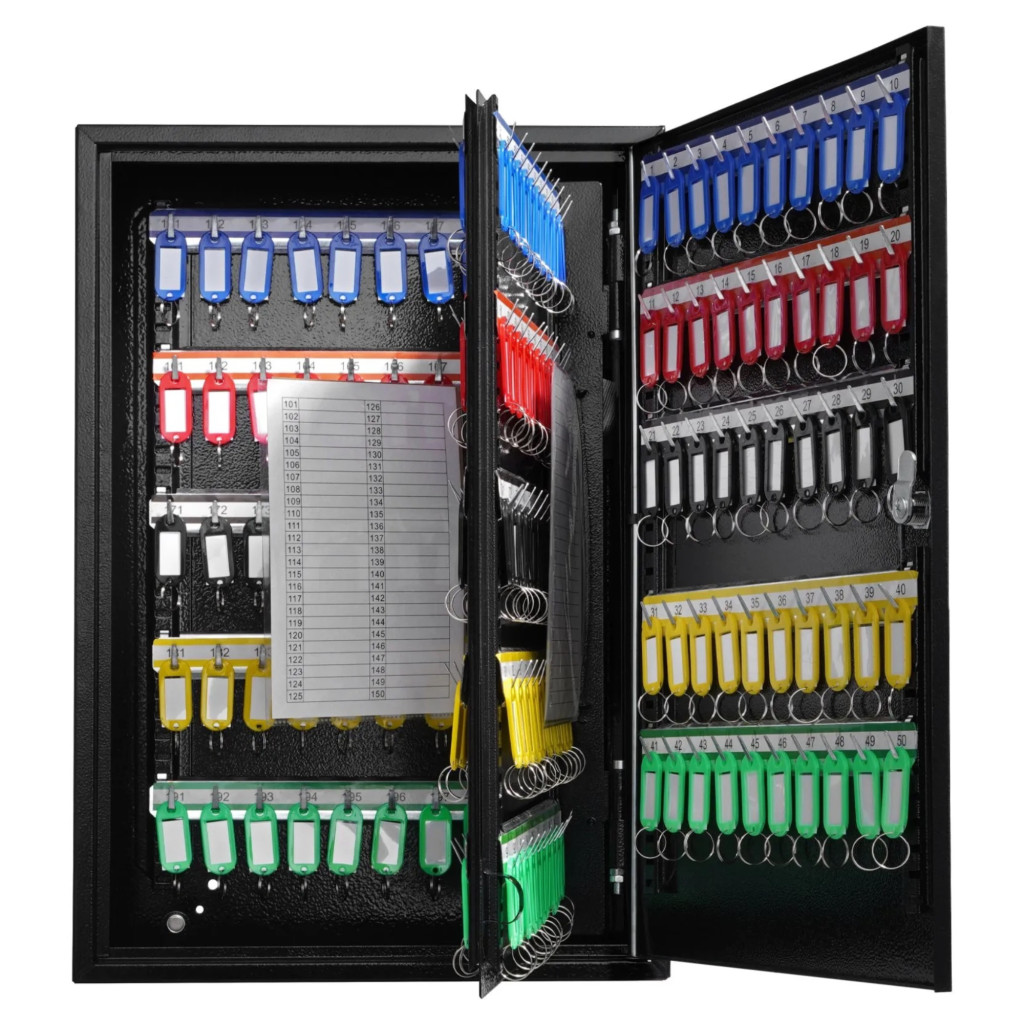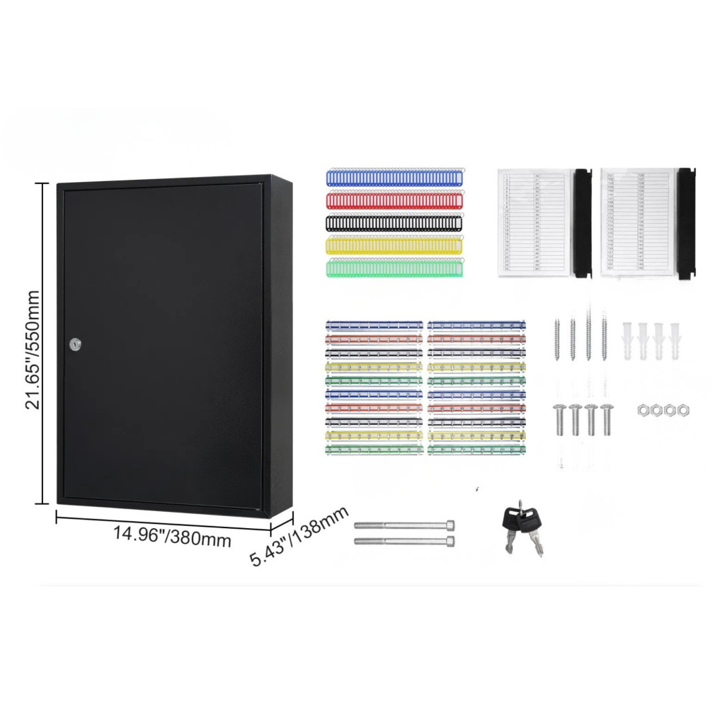 Kulcsszekrény 200 kulcsos zárható kulcstartó szekrény fekete, falra szerelhető, állítható akasztókkal
