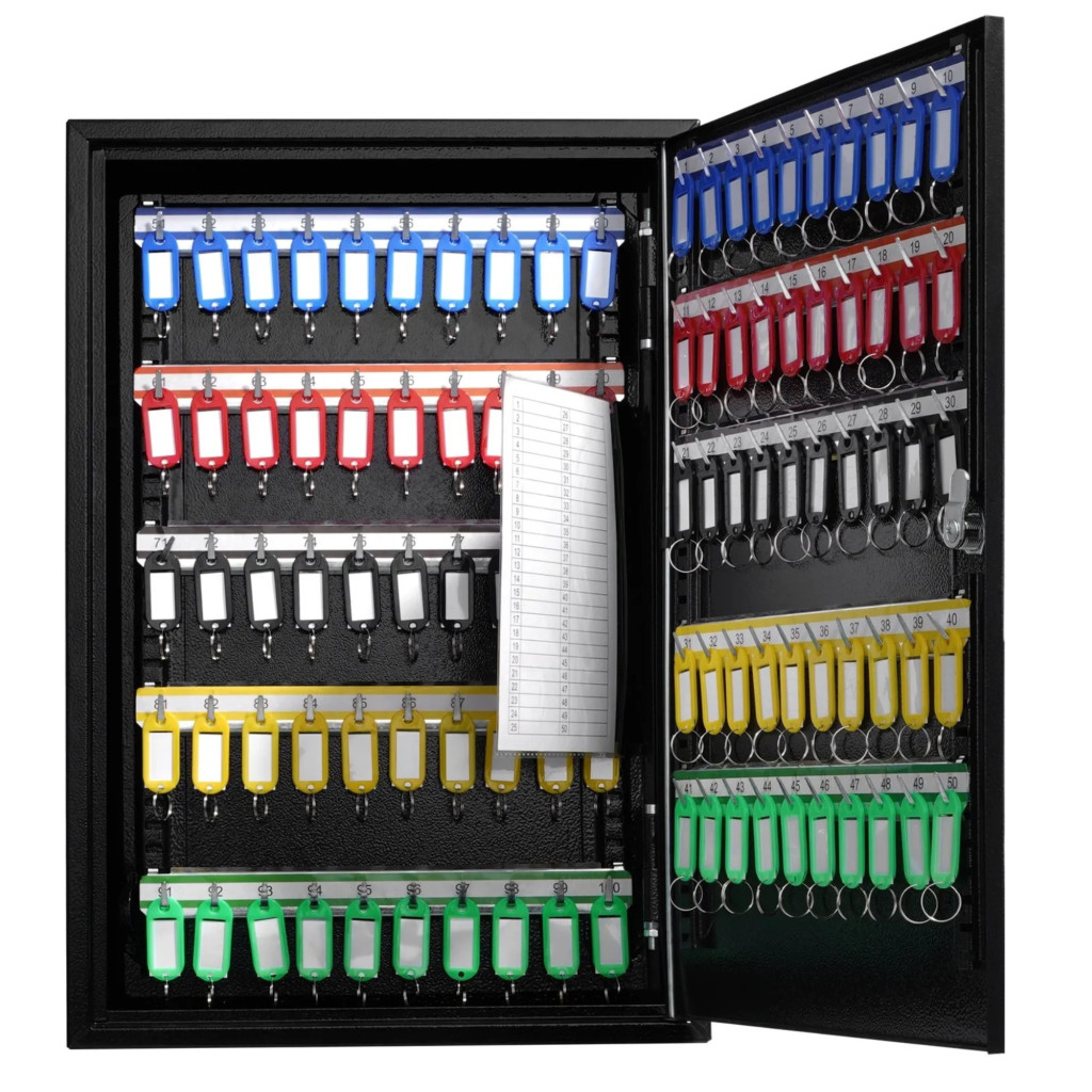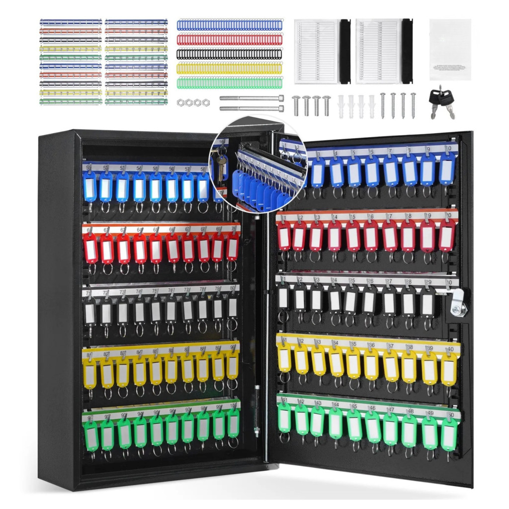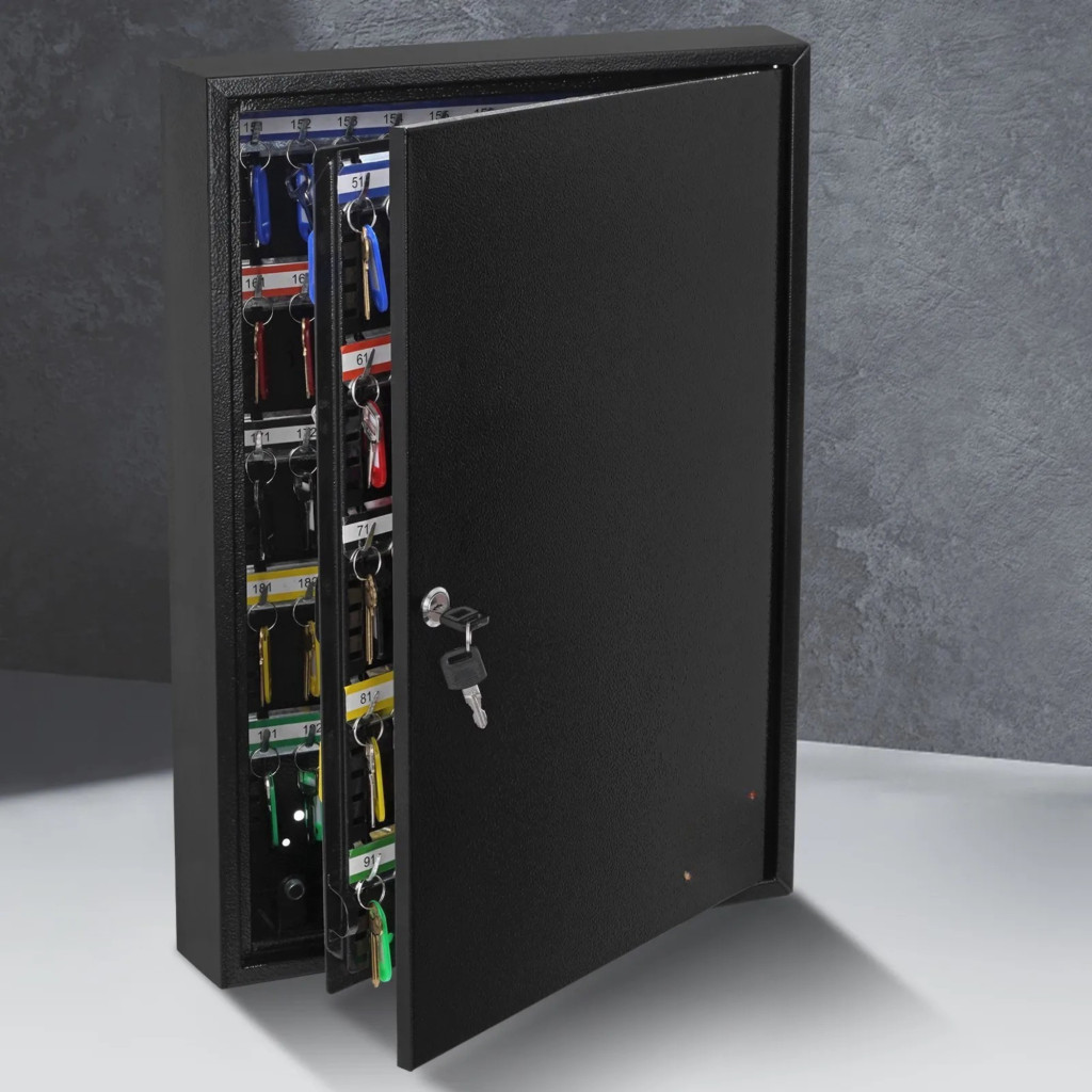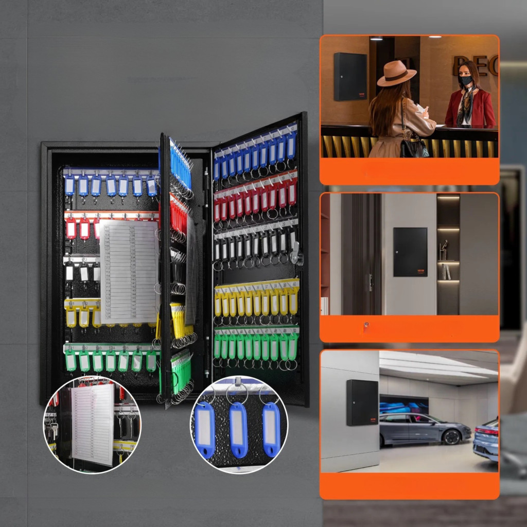 Kulcsszekrény 200 kulcsos zárható kulcstartó szekrény fekete, falra szerelhető, állítható akasztókkal
