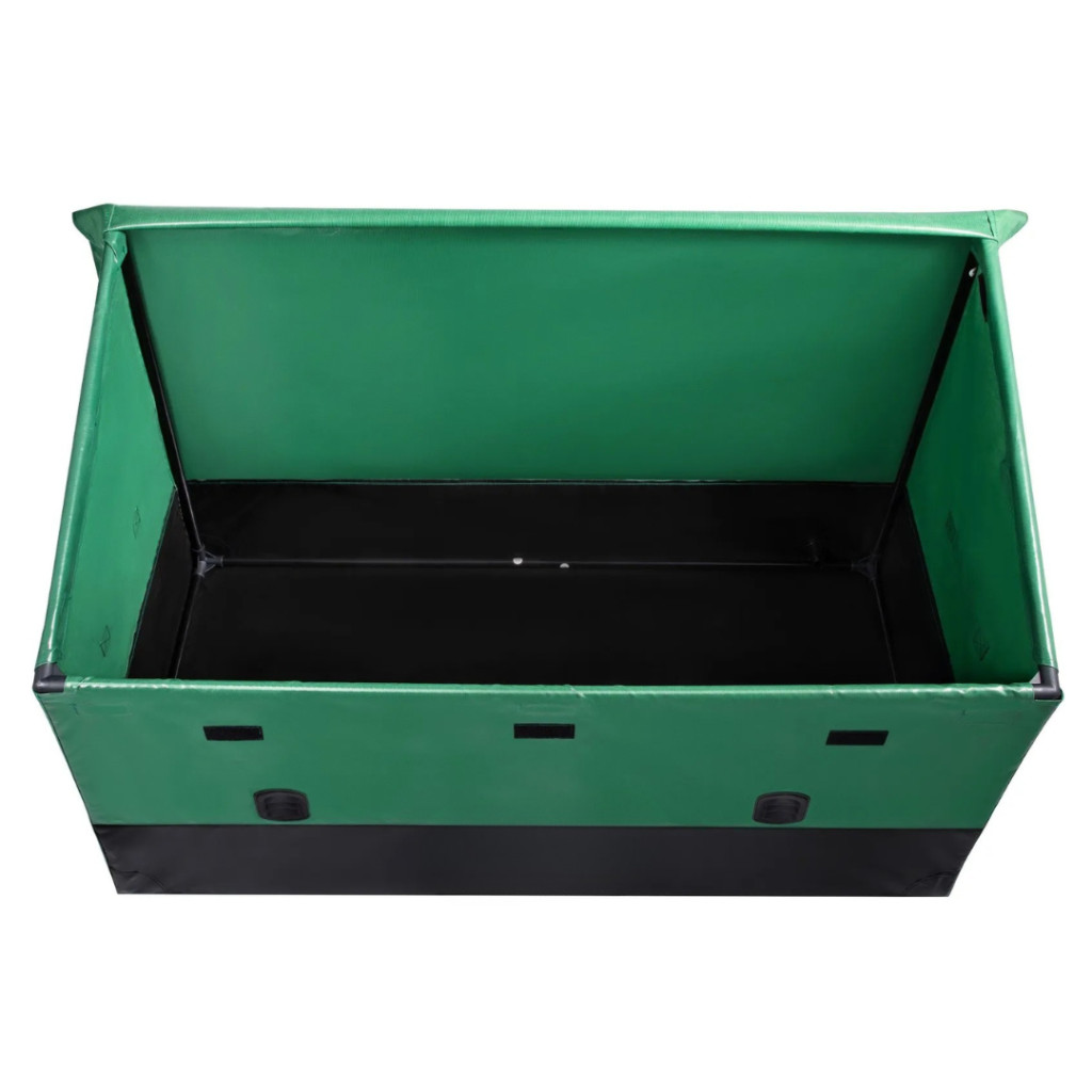 • Vízálló PE ponyvaborítás: A nagy szilárdságú, ipari minőségű PE borítás megbízható védelmet nyújt minden időjárási körülmény között. A ferde tető kialakítás megakadályozza a víz vagy hó felgyülemlését, így tartalma mindig száraz marad.