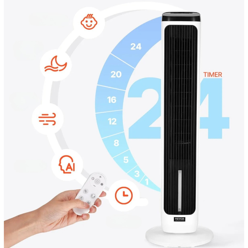 A készülék 9 sebességfokozattal, valamint Baby, Komfort, Erős és Smart üzemmóddal rendelkezik. A távirányítós ventilátor érintőpanellel és 24 órás időzítővel is felszerelt, így a működés teljes mértékben az Ön napirendjéhez igazítható.