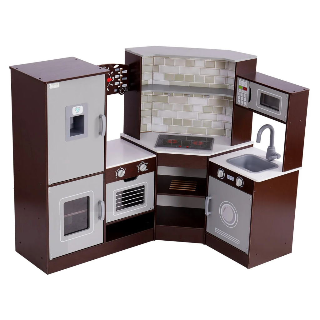 Gyerek sarokkonyha fa játékkonyha fénnyel, hanggal és jégadagolóval