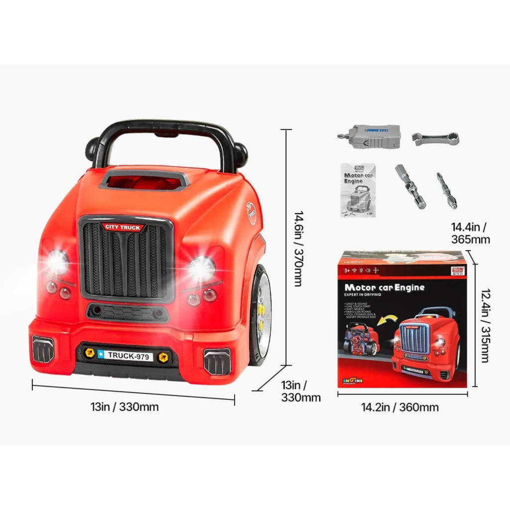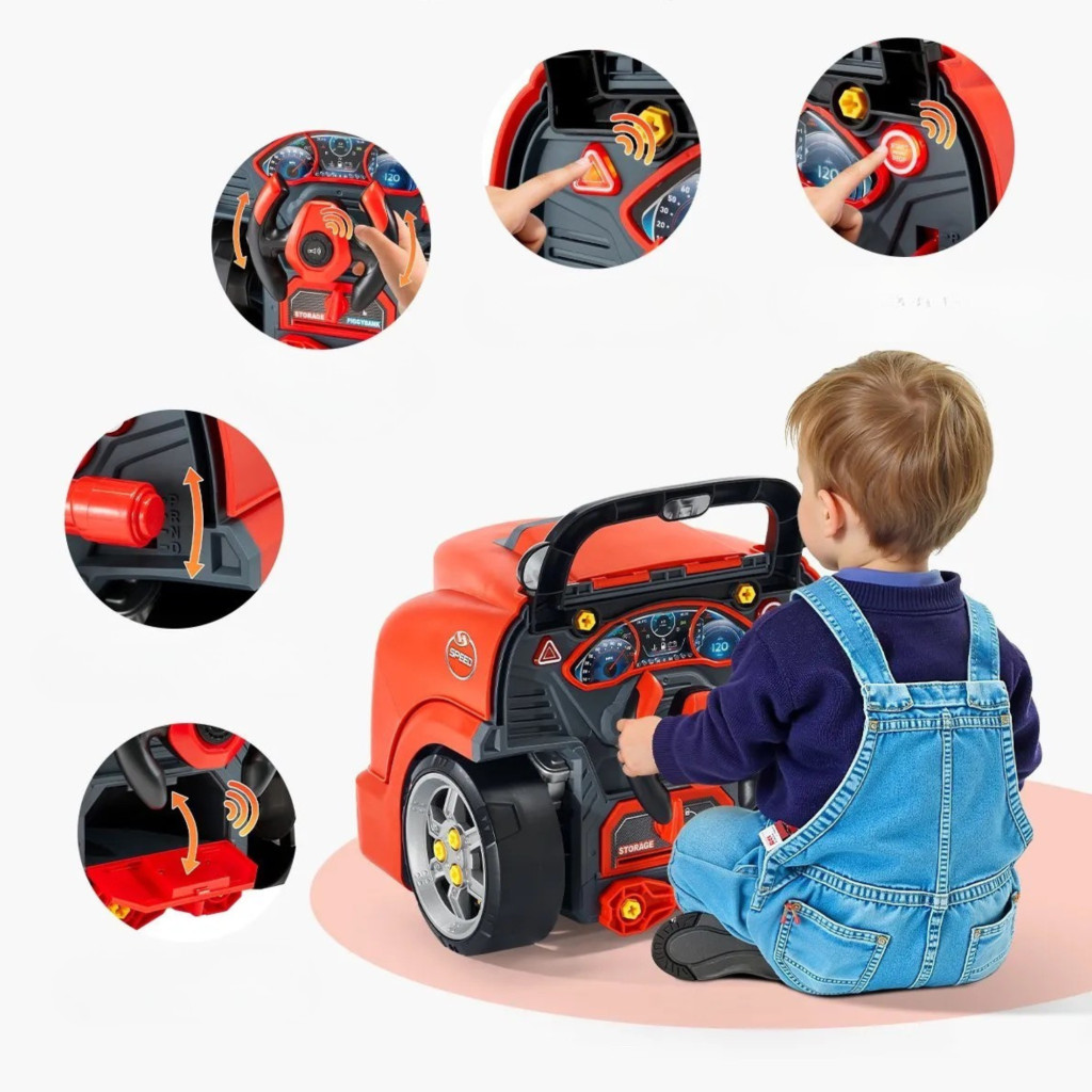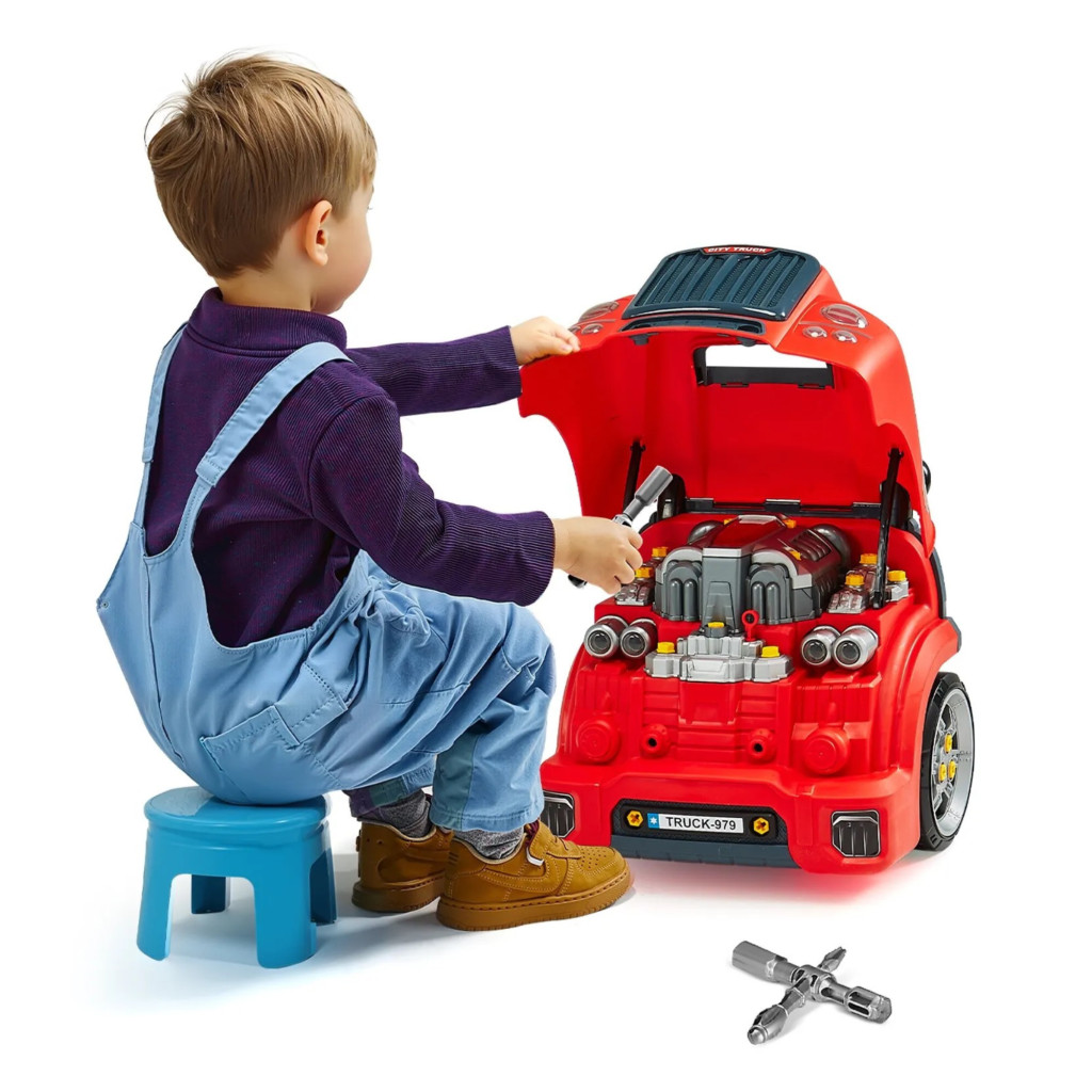 Gyerek autószerelő játék 60 darabos autójavító készlet gyerekeknek fénnyel és hanggal 3 éves kortól, piros