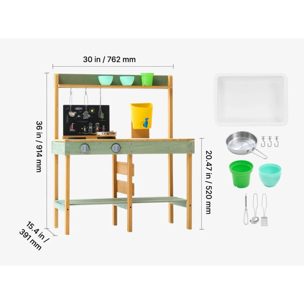 Gyerek sárkonyha kültéri fa játékkonyha kiegészítőkkel 762x391x914 mm