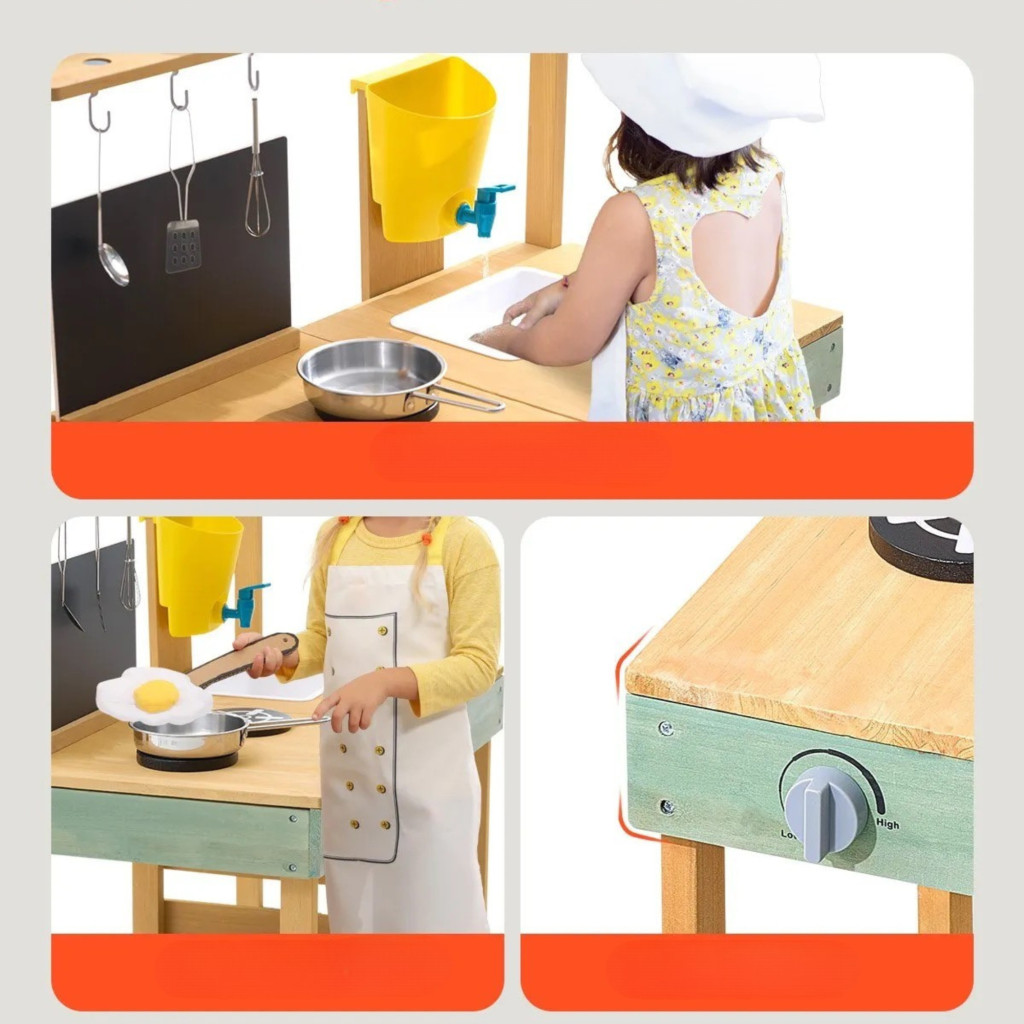 Ez a fa játékkonyha gyerekeknek igazi főzőélményt kínál: