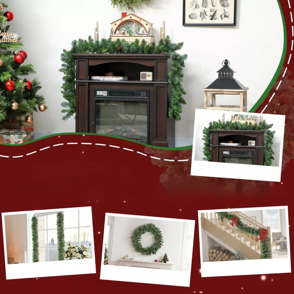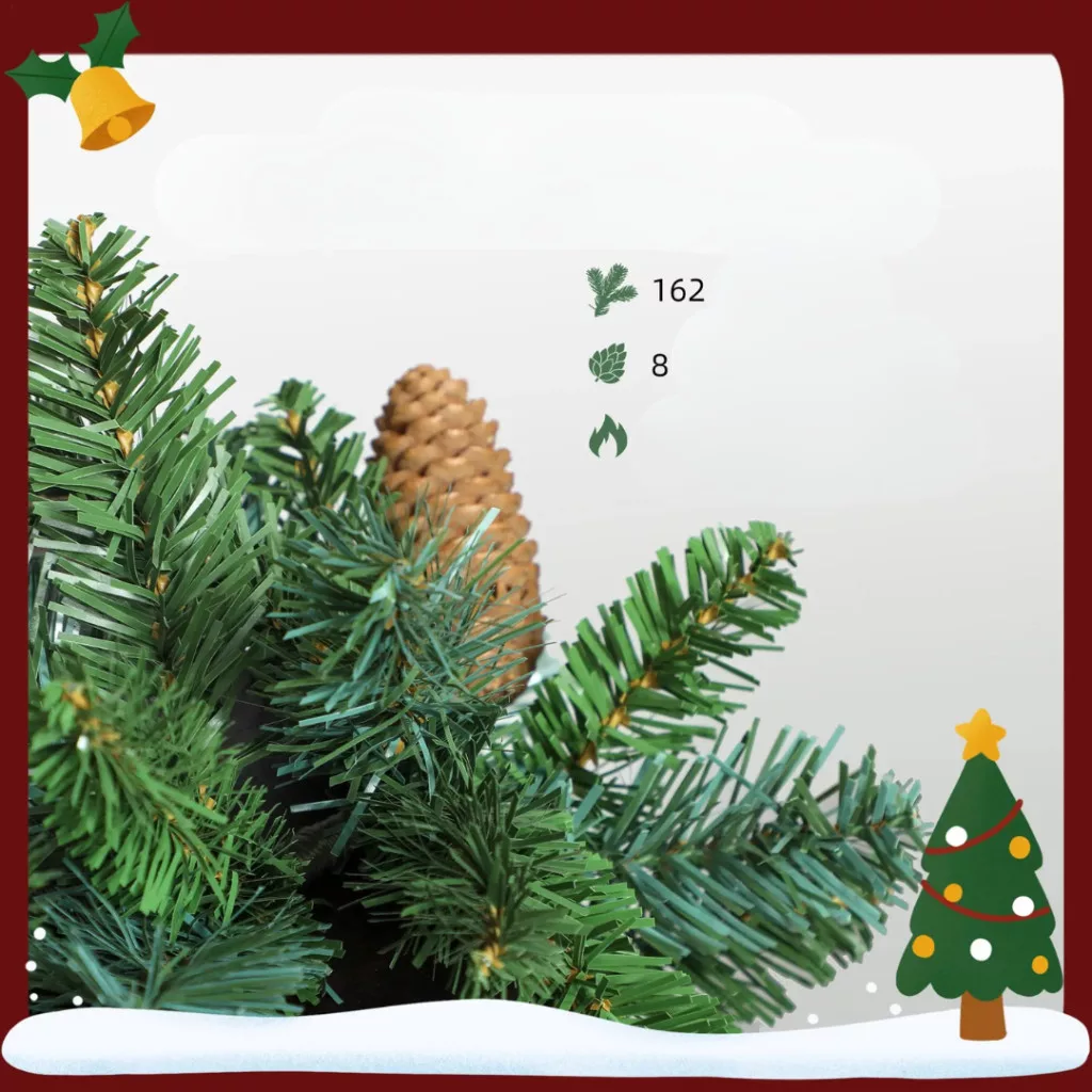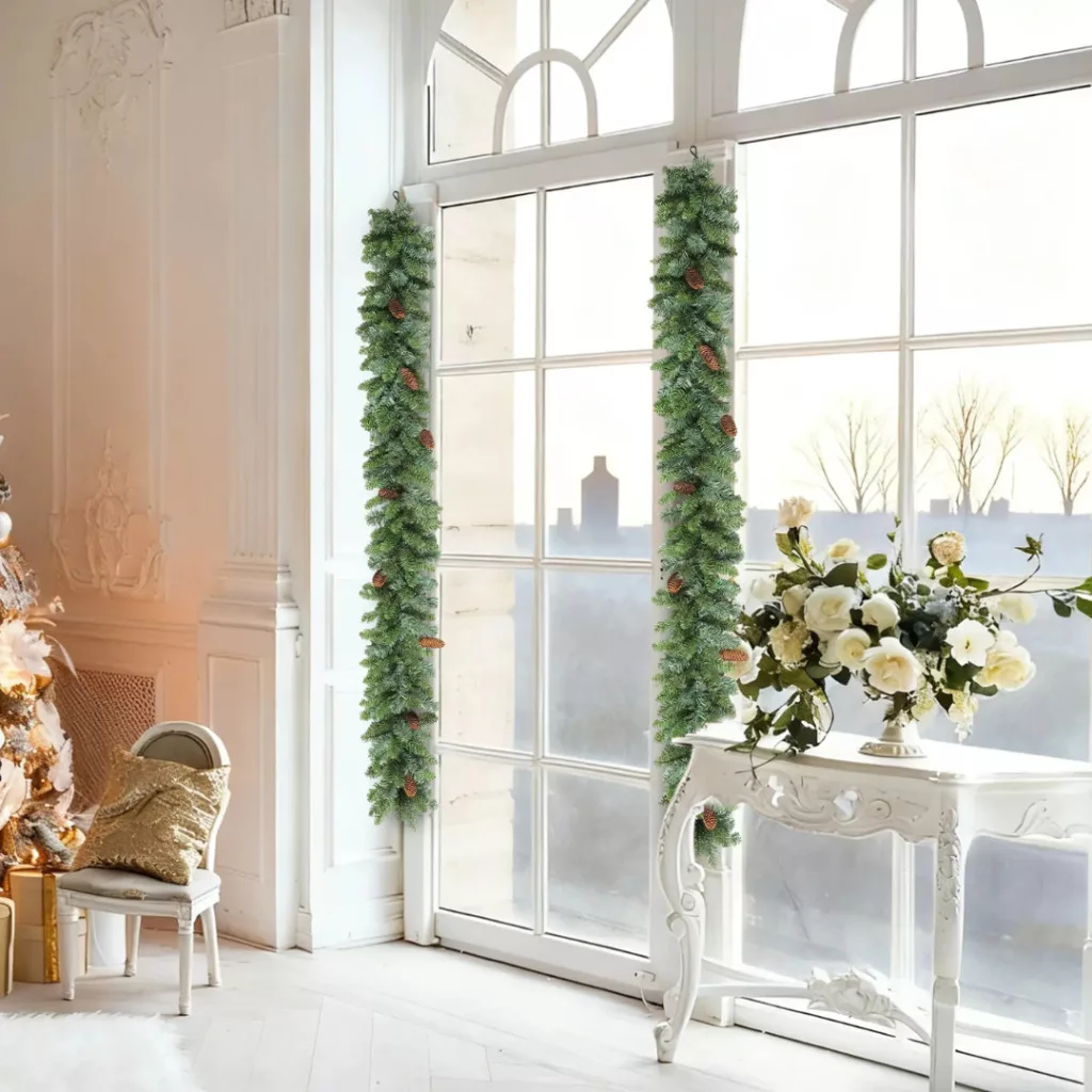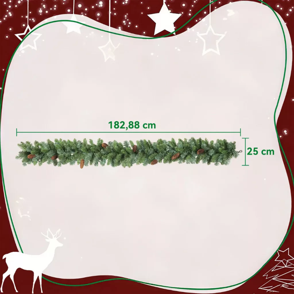 Tegye meghitté otthonát ezzel a 1,8 méteres, 162 ágas, természetes hatású műfenyő girlanddal, amelyet 8 valódi fenyőtoboz díszít. Azonnal használatra kész, nem igényel szerelést vagy karbantartást, és klasszikus karácsonyi hangulatot teremt minden helyiségben – legyen szó kandallóról, ajtóról, falról vagy lépcsőkorlátról.