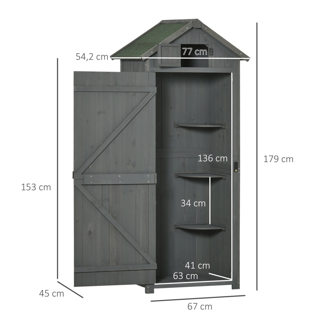 • 179 cm magas fa kerti szerszámtároló szekrény