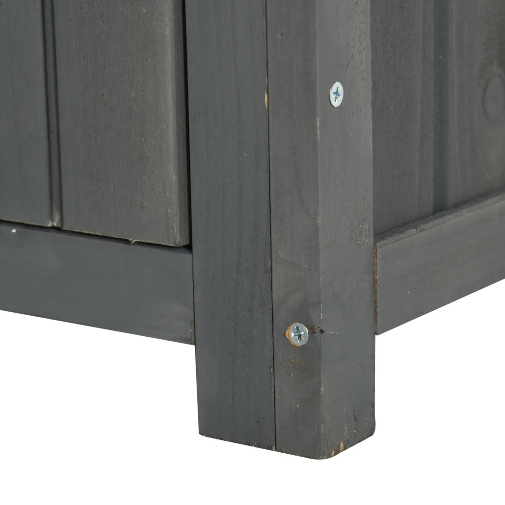 A fenyőfából készült kerti tároló szekrény stabil és tartós kialakítással rendelkezik.