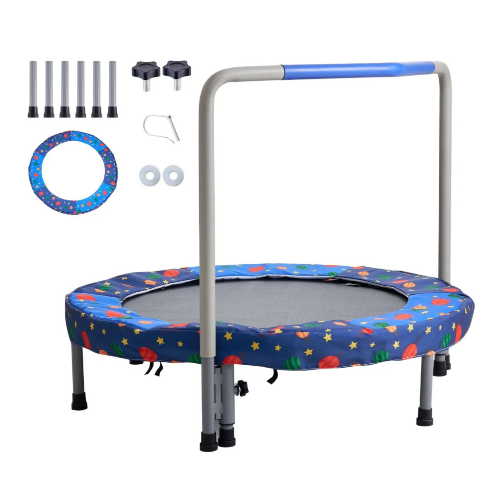 Gyerek trambulin kapaszkodóval 91 cm összecsukható mini trambulin kék 100 kg teherbírás