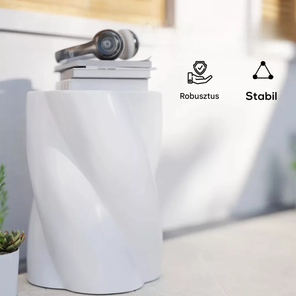 Kerámia kerti ülőke fedéllel Ø33x45 cm spirál mintás dekor hokedli, fehér 120 kg teherbírás időjárásálló kerti zsámoly