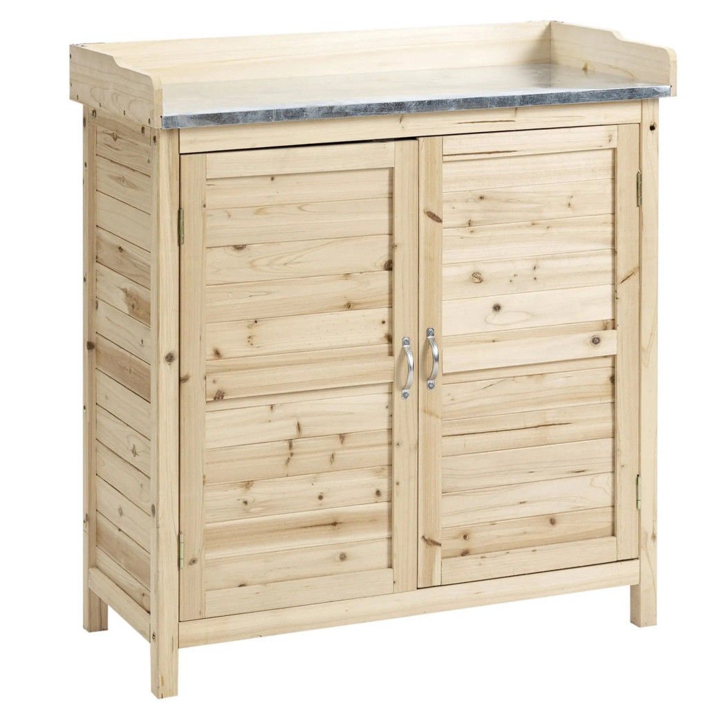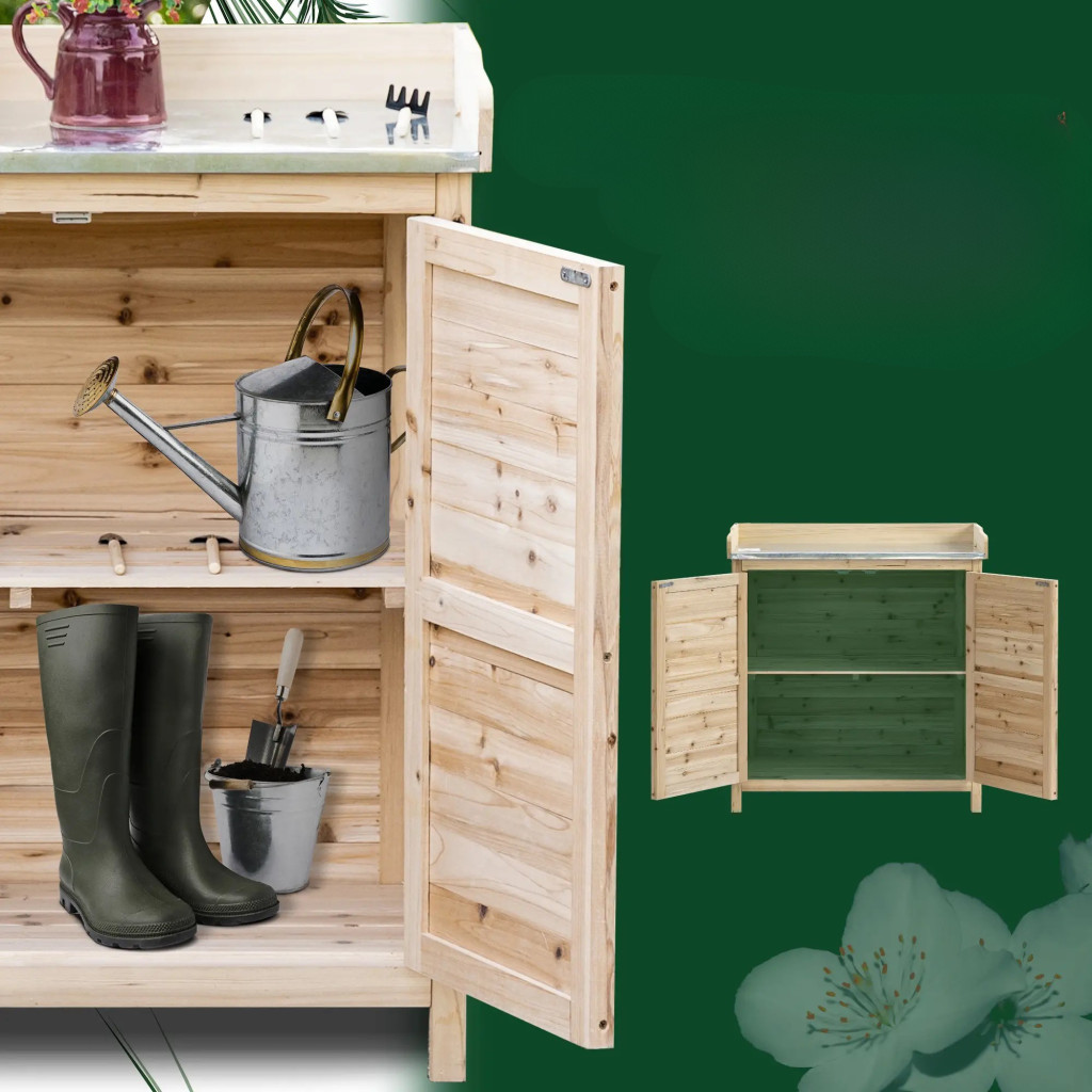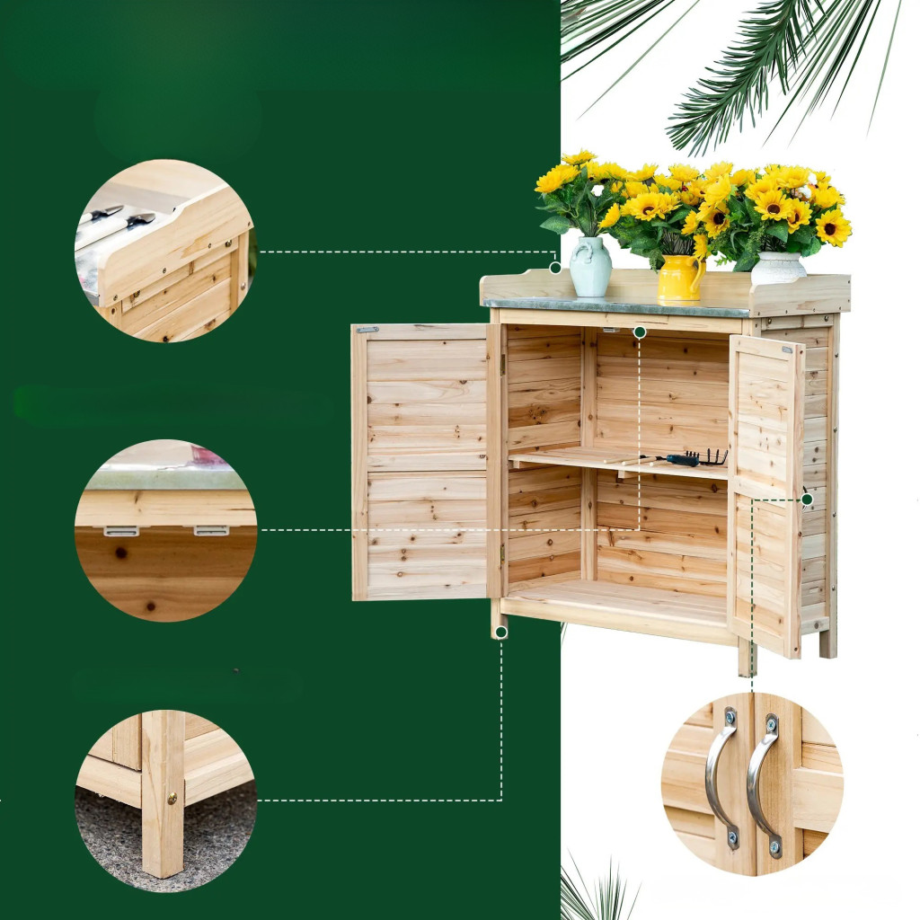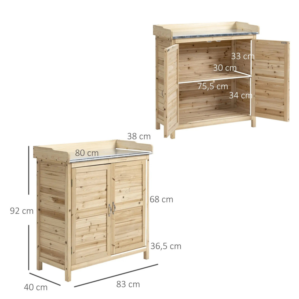 Kerti szerszámtároló szekrény ültetőasztal 83x40x92 cm fa kerti munkapad tárolóval natúr fa