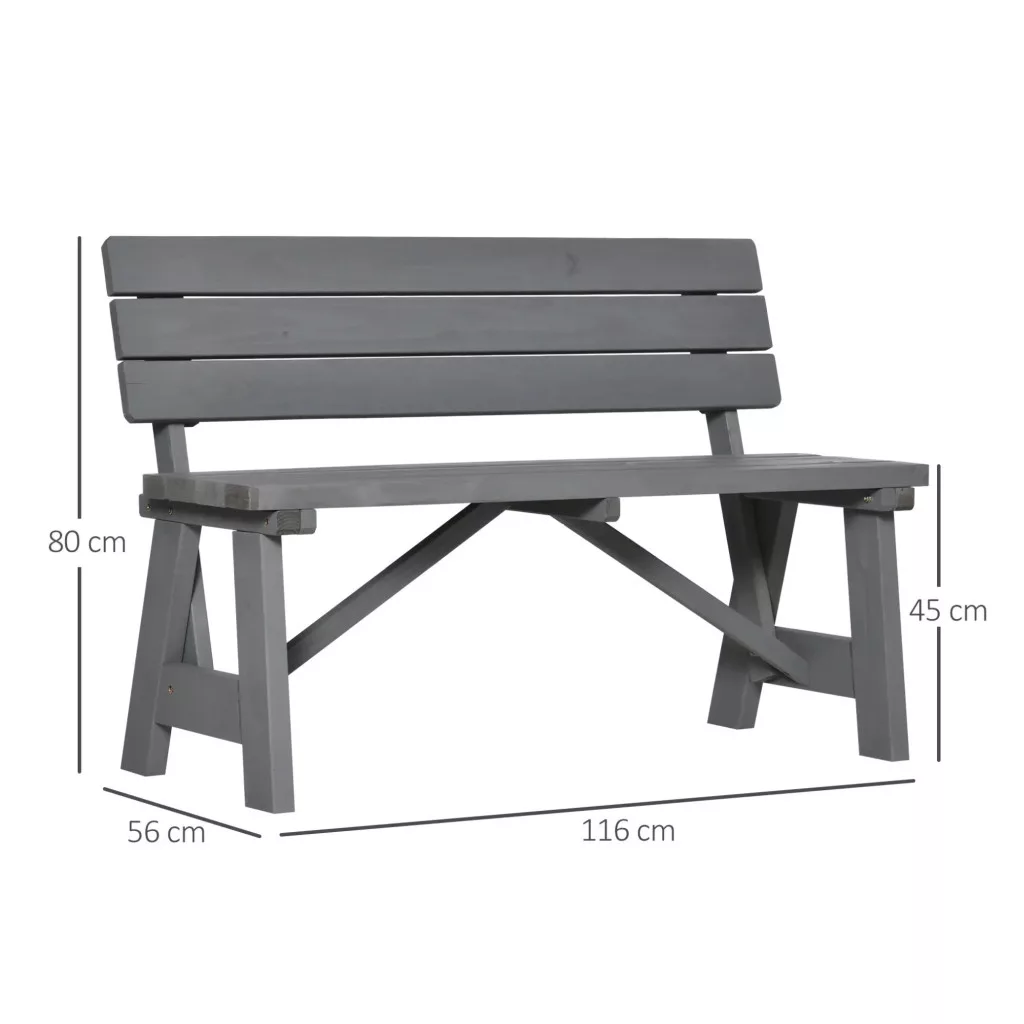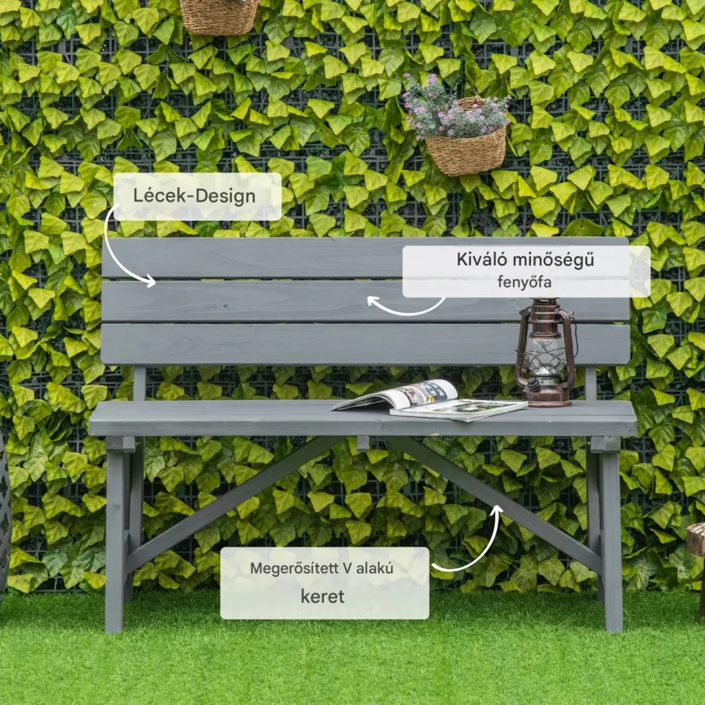 Fa kerti pad 2 személyes időjárásálló kerti pad háttámlával 116x56x80 cm szürke