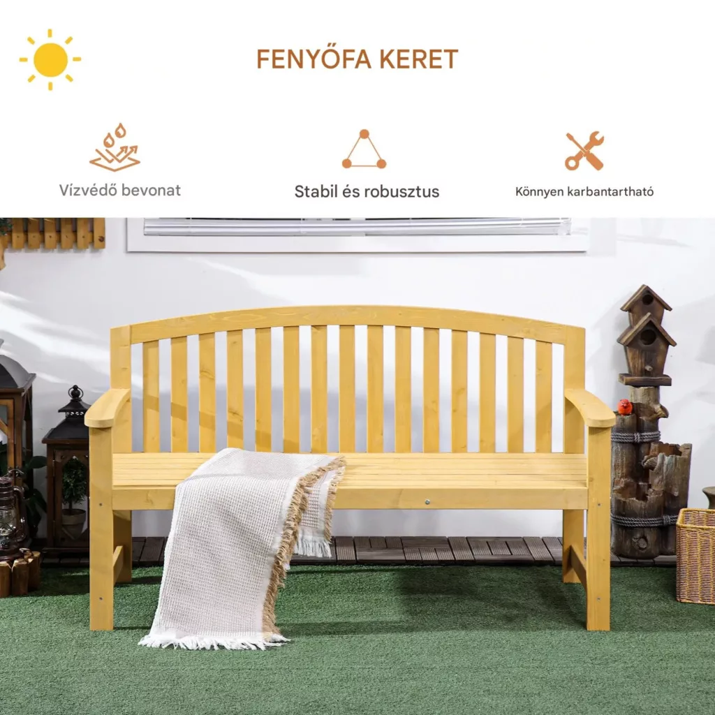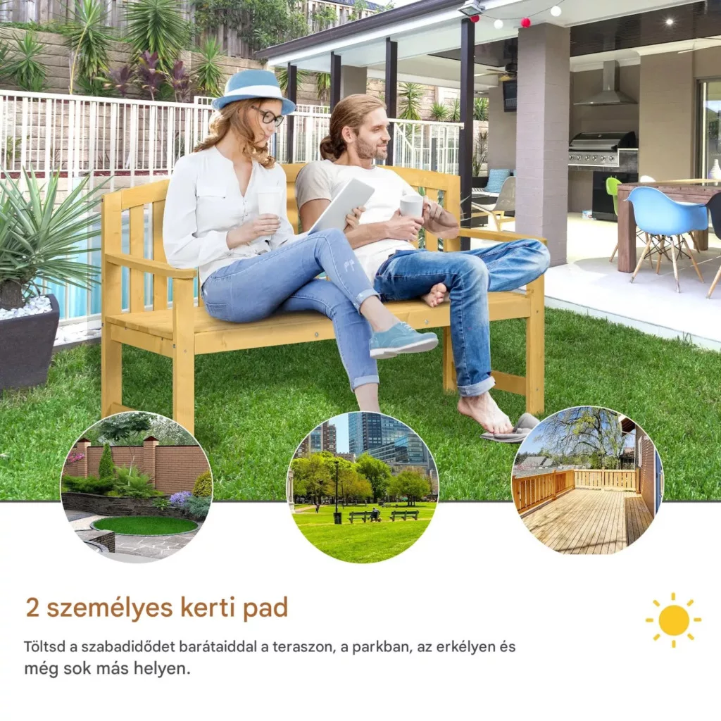 Fa kerti pad 2 személyes kerti pad háttámlával, időjárásálló 240 kg teherbírás 140x50x85 cm narancssárga