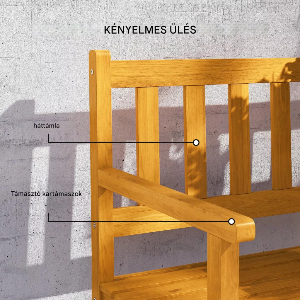 A háttámla és a karfák ergonomikus kialakítása gondoskodik arról, hogy hosszabb időn keresztül is kényelmesen pihenhessen rajta. Legyen szó egy nyugodt reggeli kávéról, egy délutáni olvasásról vagy egy esti beszélgetésről, ez a kültéri fa kerti pad minden helyzetben kényelmes megoldást kínál.