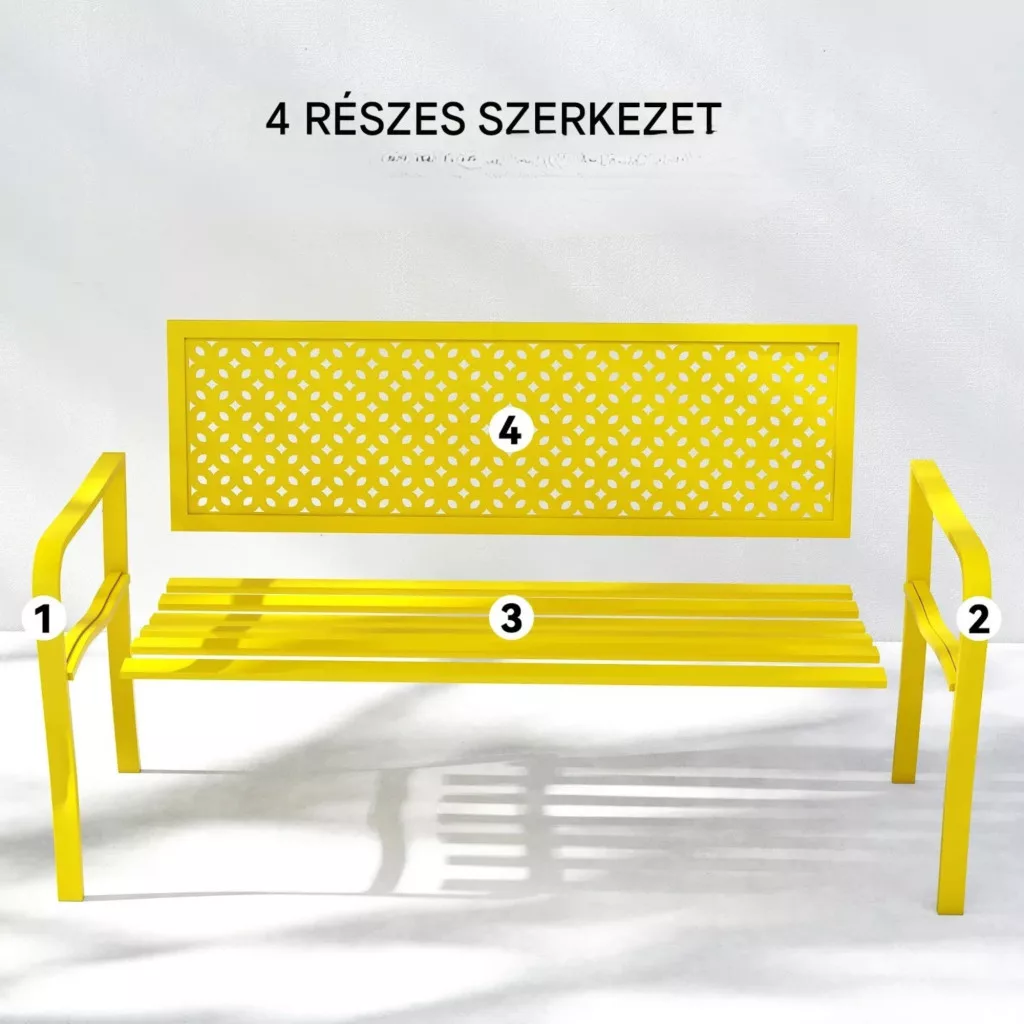 Az élénk sárga kerti pad nemcsak ülőhely, hanem dekoráció is: feldobja kertjét, teraszát vagy akár egy közösségi teret.