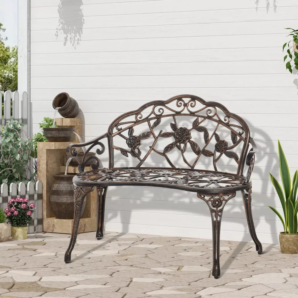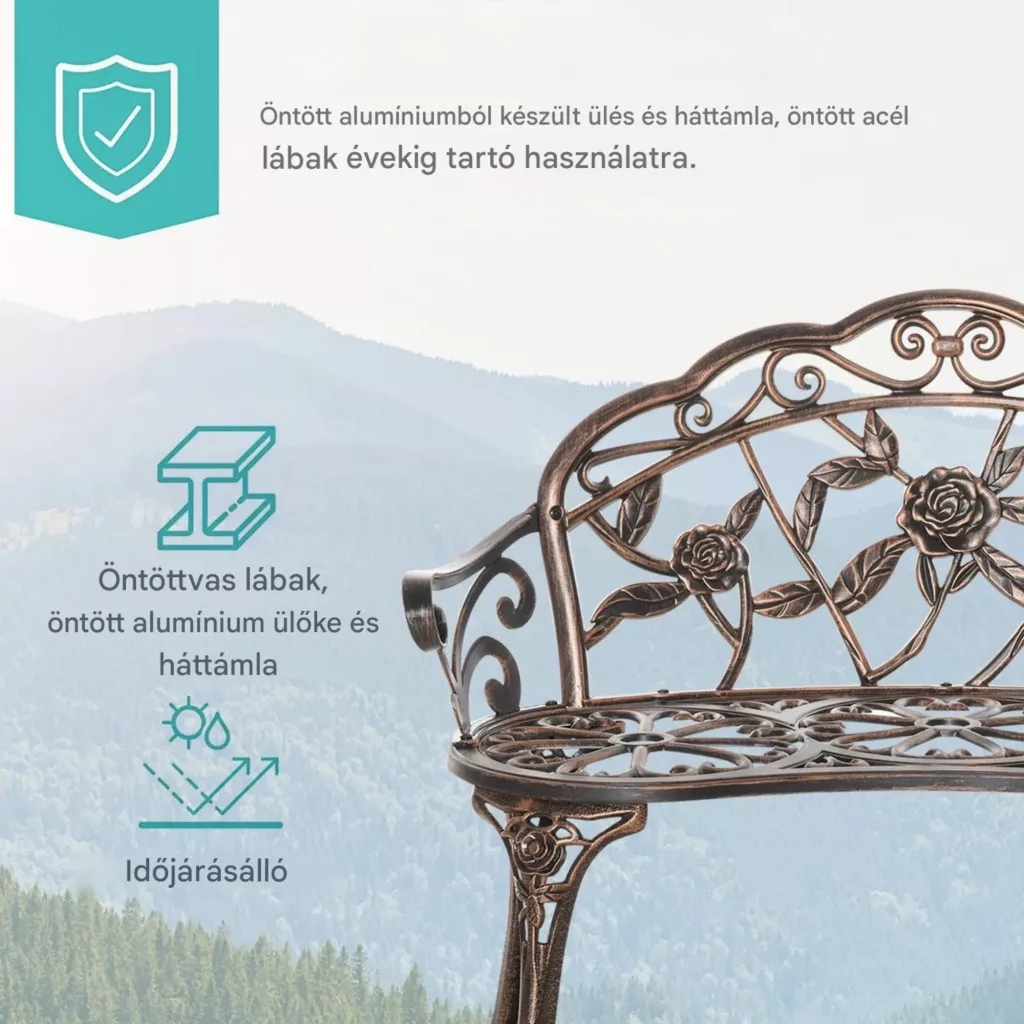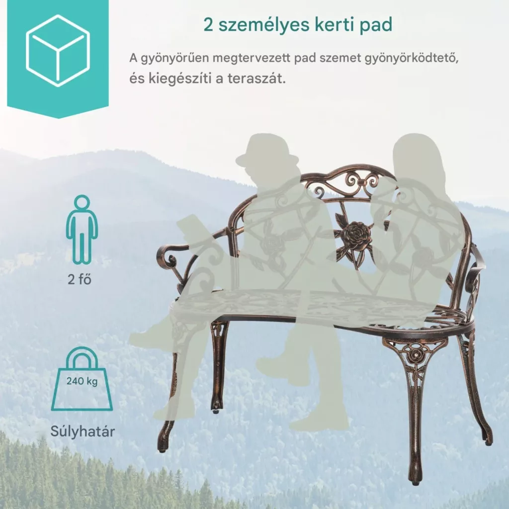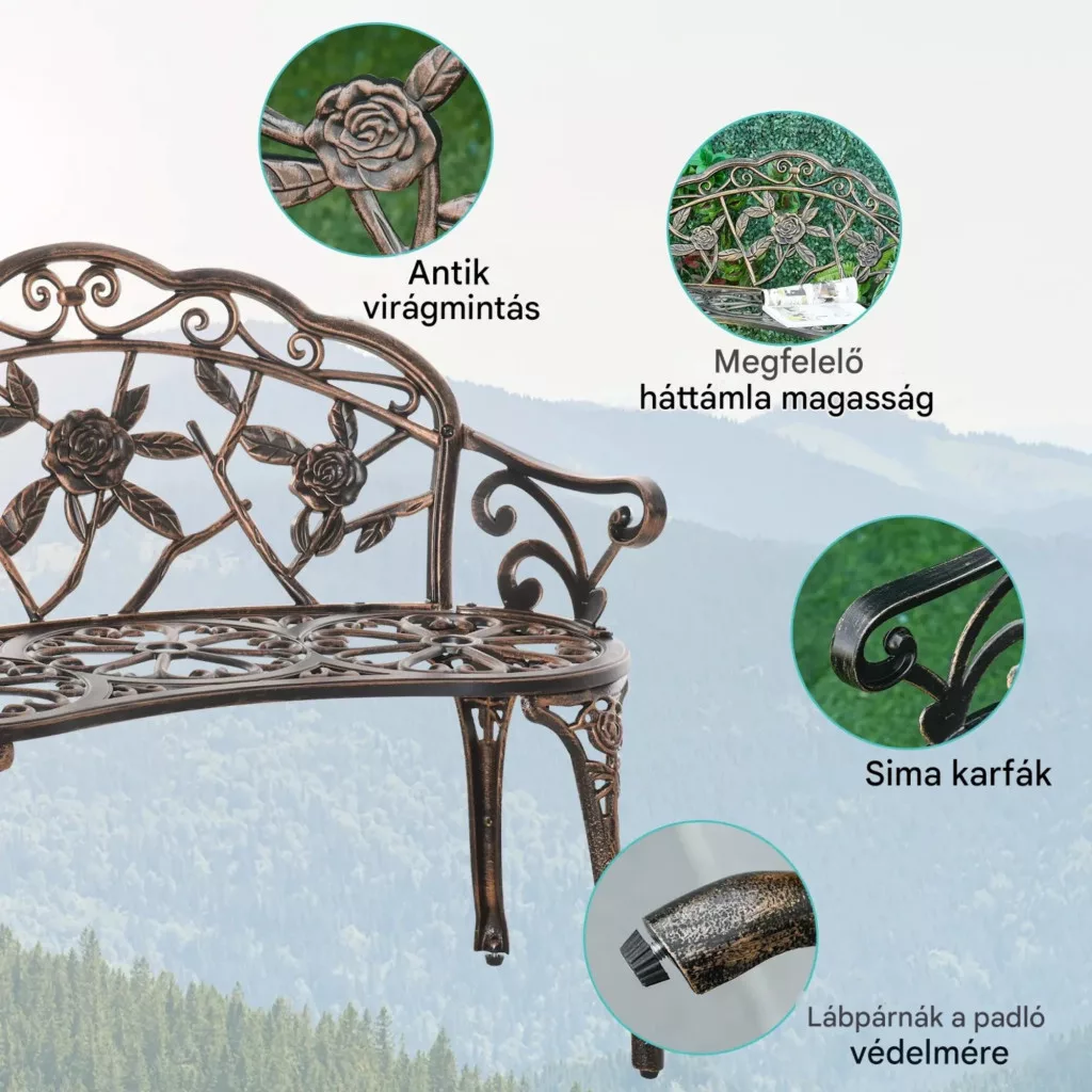 2 személyes fém kerti pad retro stílusban 100x54x78 cm bronz