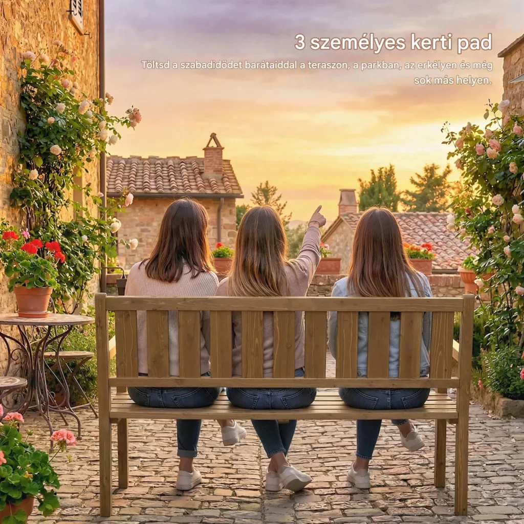 Ez a 3 személyes fa kerti pad ideális választás, ha egy stabil, kényelmes és esztétikus ülőhelyet szeretne kialakítani kertjében vagy teraszán.