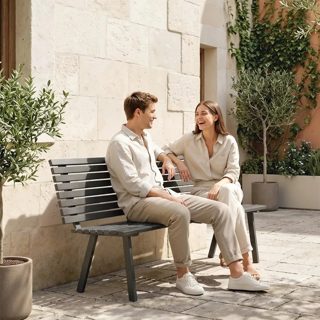 Az elegáns fekete szín és a lamellás design kerti pad letisztult, modern megjelenést kölcsönöz. Tökéletesen illeszkedik kertekbe, teraszokra, erkélyekre vagy akár előkertekbe is.