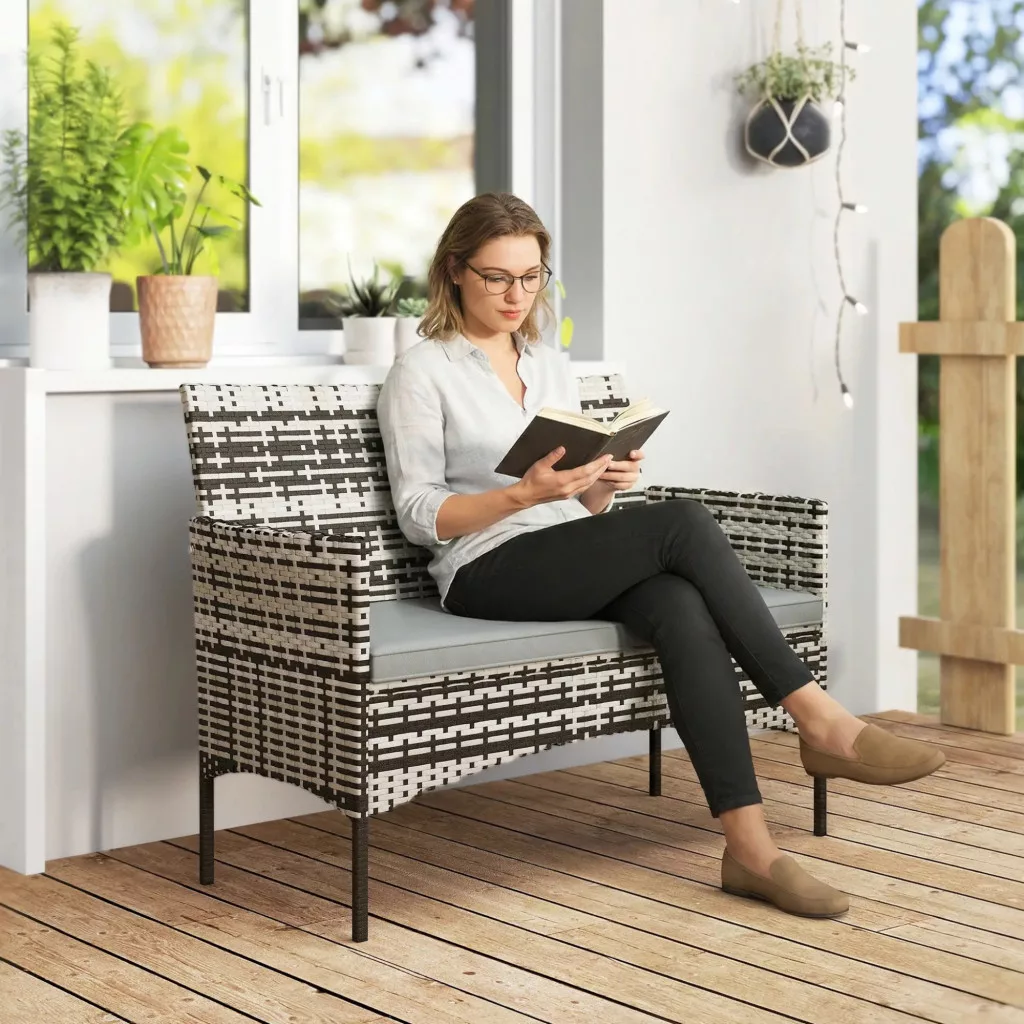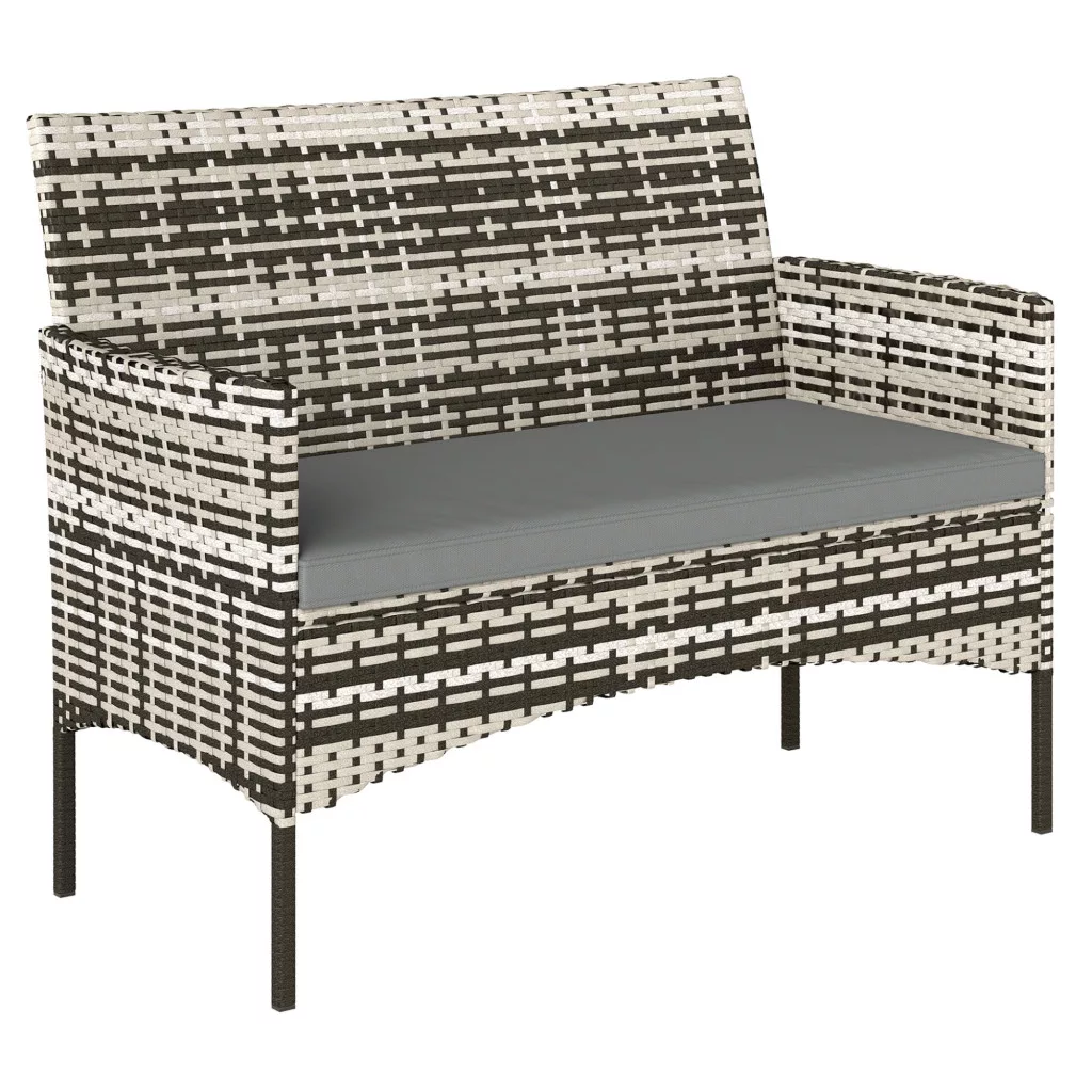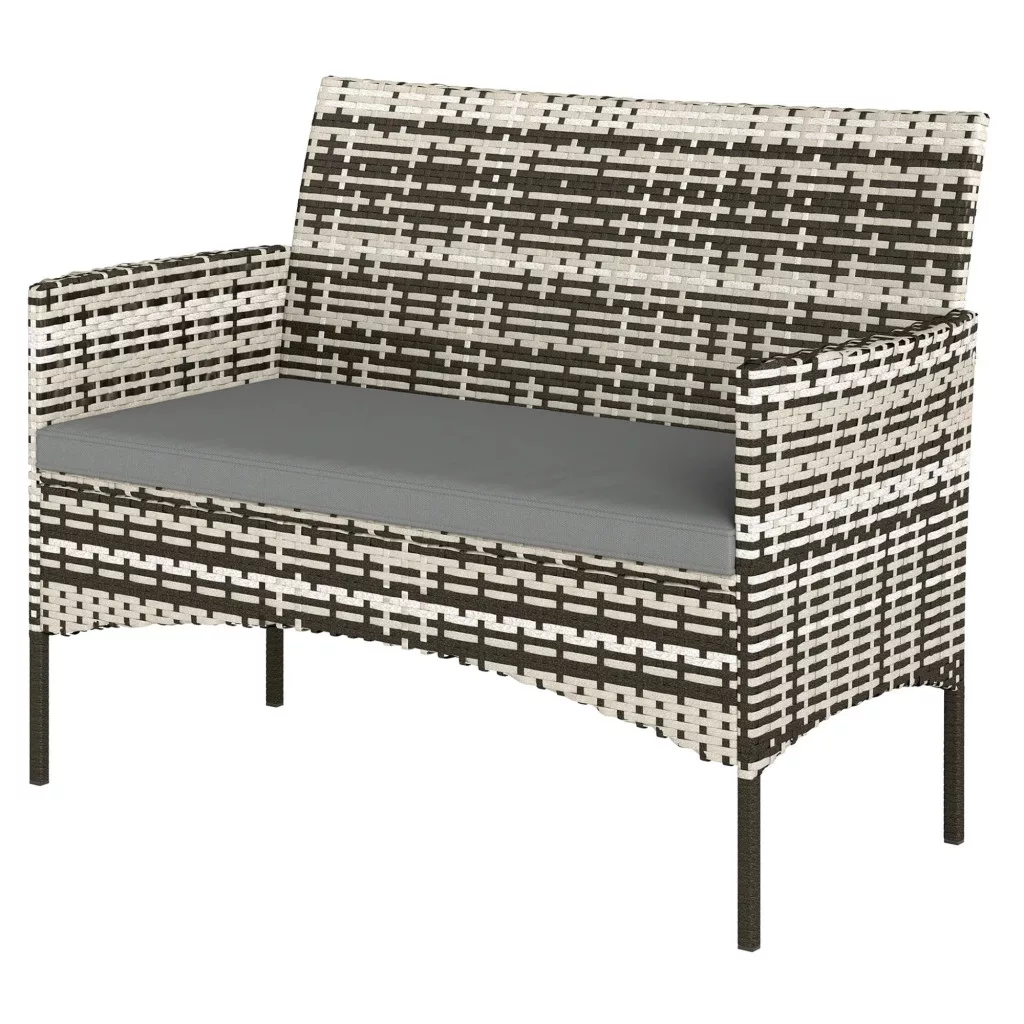 Kerti rattan kanapé 2 személyes PE rattan kerti ülőgarnitúra párnával, szürke