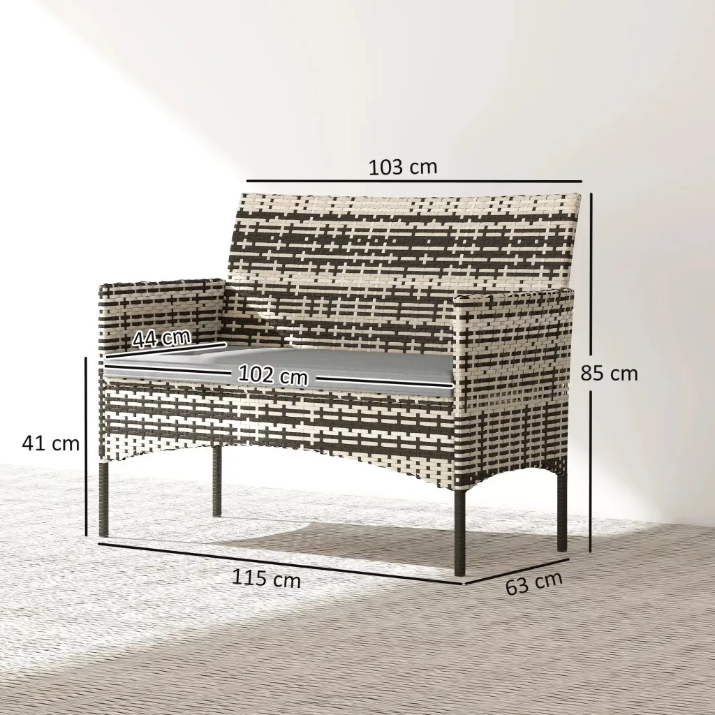 Ez a rattan kerti kanapé 2 személyes kivitelben ideális választás, ha egy kényelmes és stílusos ülőhelyet szeretne kialakítani a szabadban.