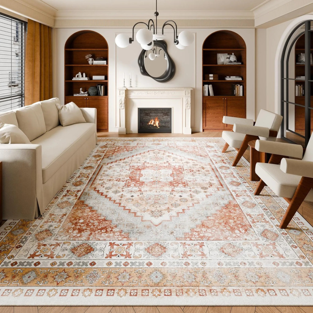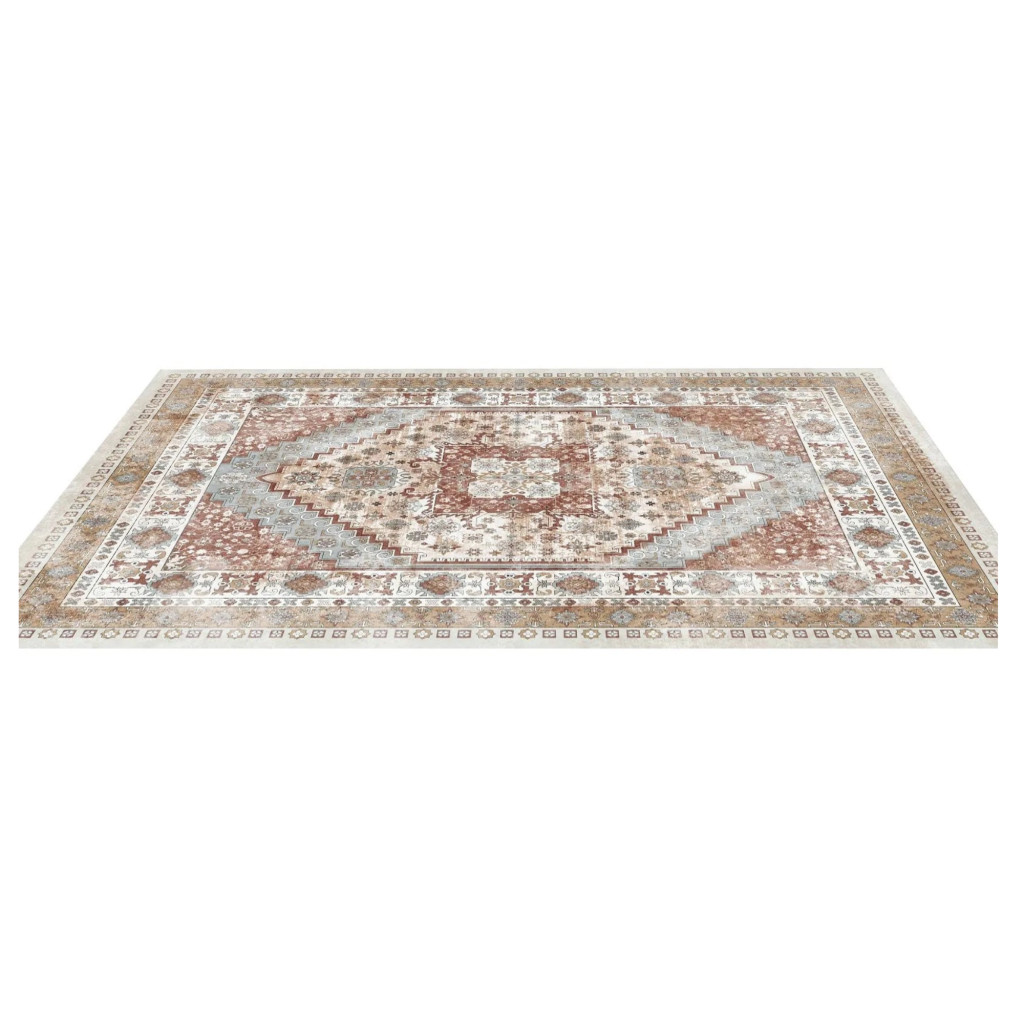 Vintage nappali szőnyeg 274x366 cm mosható, csúszásmentes rövid szálú felületszőnyeg barna–vörös árnyalatban