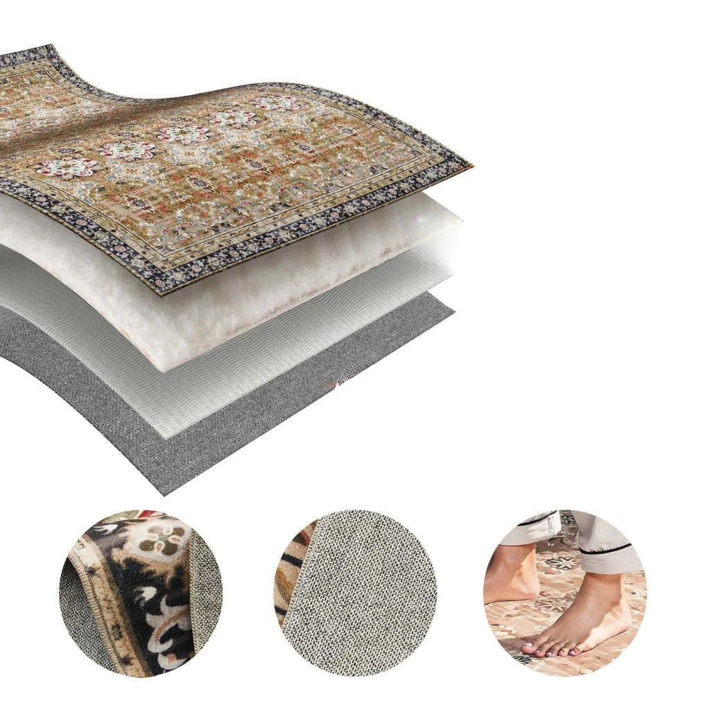 Vintage stílusú nagyméretű szőnyeg 274x366 cm mosható, csúszásmentes felületszőnyeg barna-zöld színben