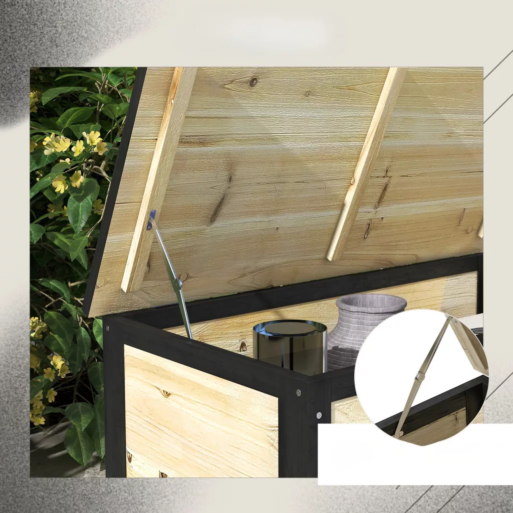 A fenyőfa kerti tároló doboz masszív szerkezettel készült, amely hosszú távú használatot biztosít.