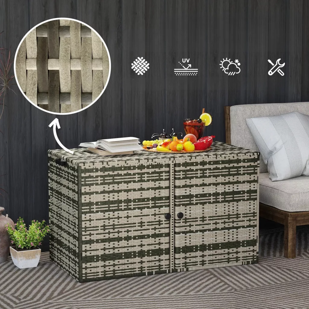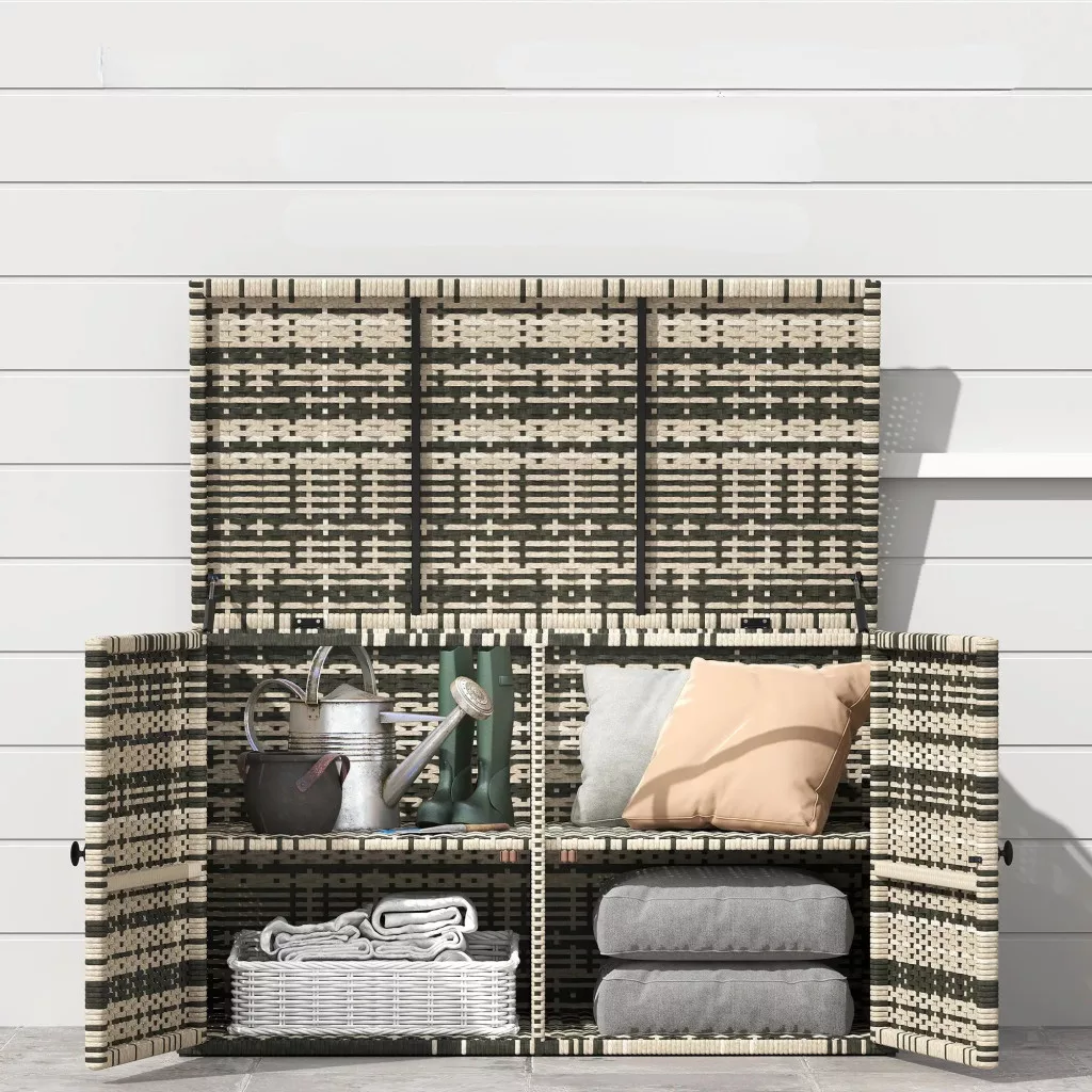 Rattan kerti tárolóláda 350L két szintes kültéri tároló gázrugóval 118x57x69 cm szürke