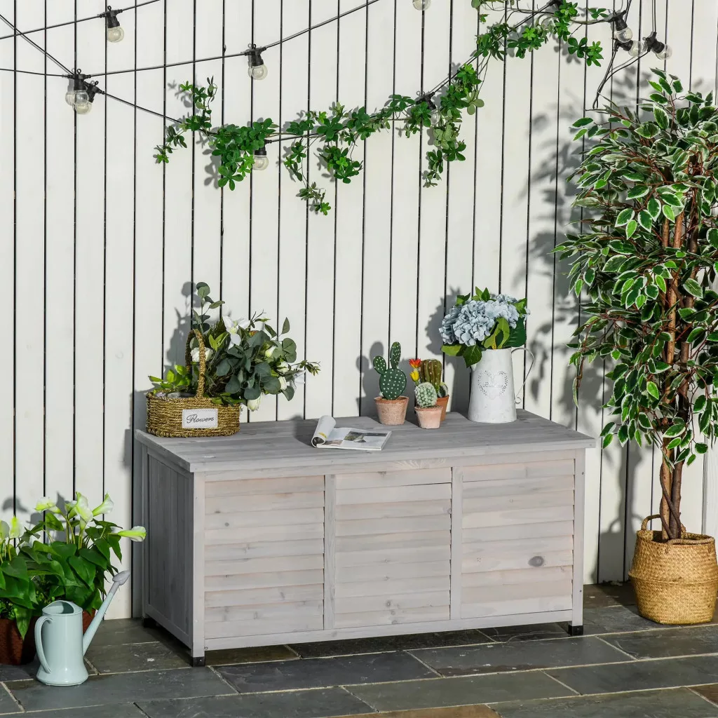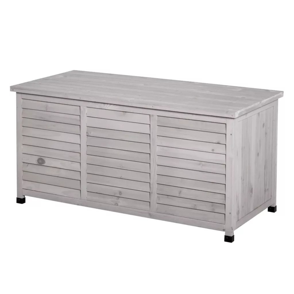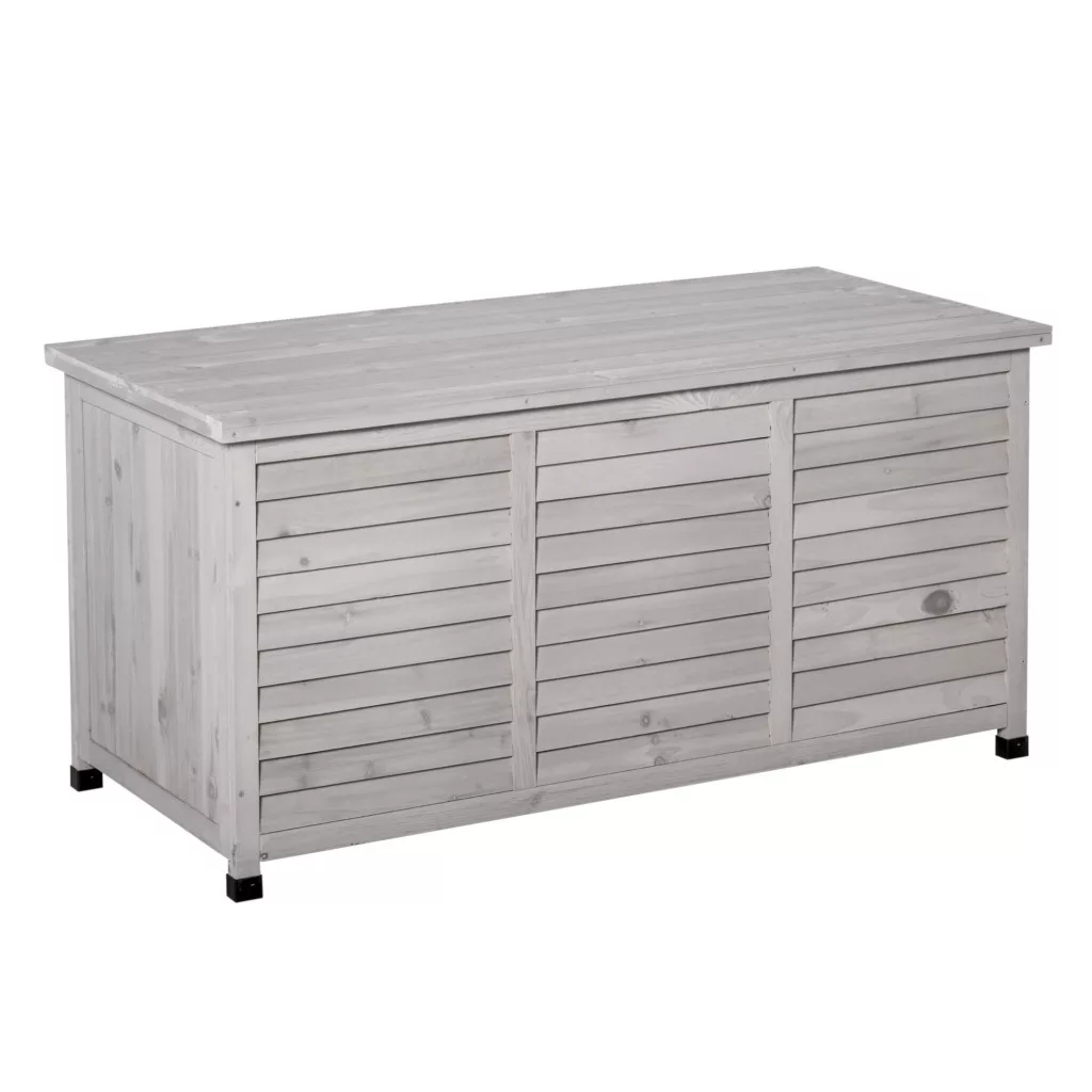 Kerti tároló láda 127x56x60 cm időjárásálló kerti párnatartó box lucfenyő szürke