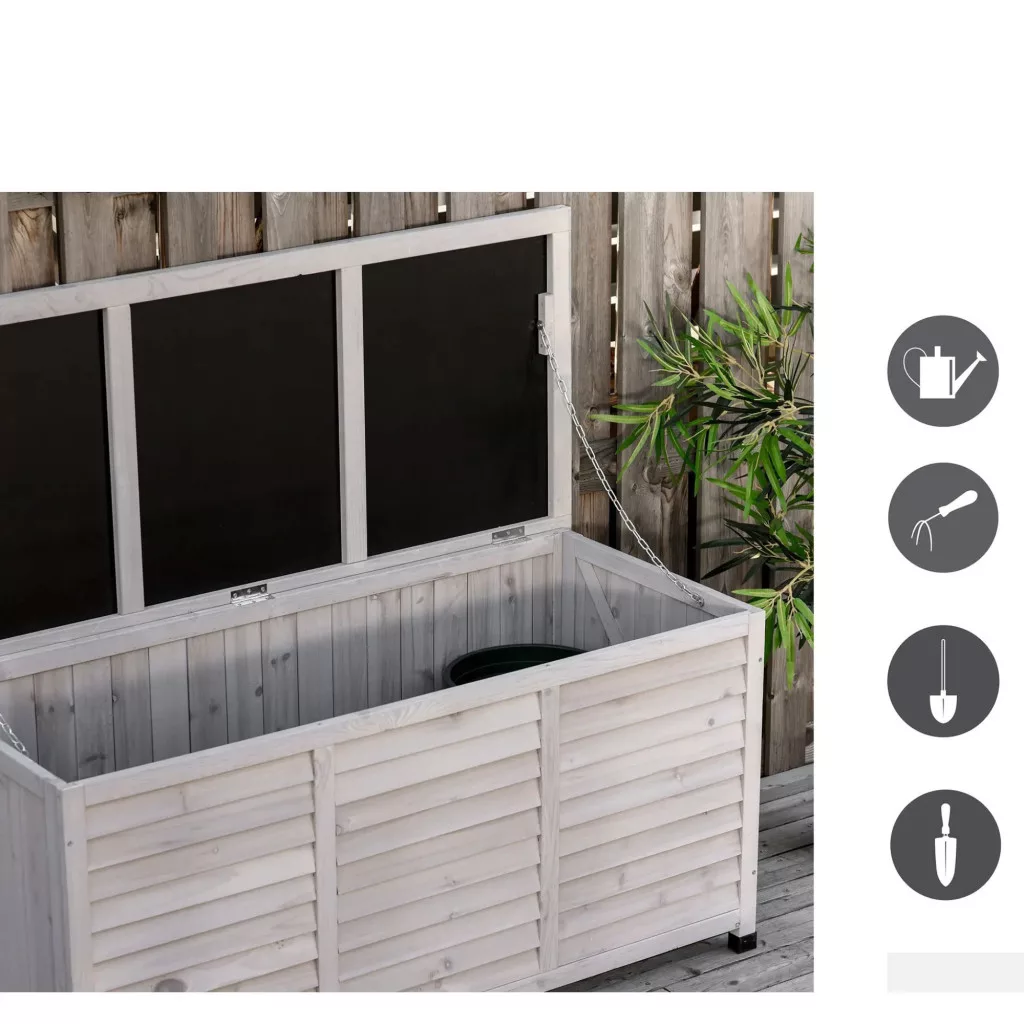 A 127 cm hosszú kerti tároló box elegendő helyet biztosít különböző kerti eszközök rendszerezett tárolásához, miközben dekoratív eleme lehet a kertnek vagy a terasznak.