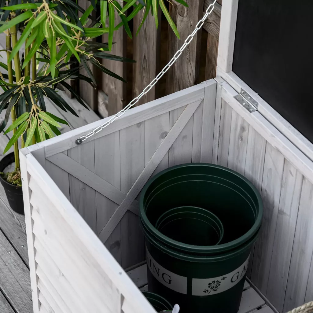Ez a fa kerti tároló láda praktikus és sokoldalú megoldás a kerti párnák, szerszámok és kültéri kiegészítők tárolására. A kerti párnatartó box masszív fenyőfa szerkezettel és vízálló bevonattal készült, amely hosszú távon is ellenáll a kültéri használat kihívásainak.