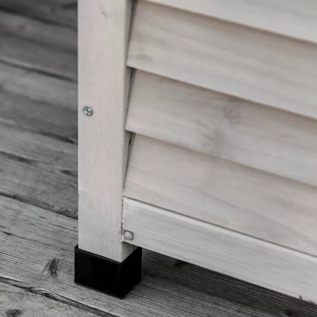 A fenyőfából készült kerti tároló láda stabil és hosszú élettartamú konstrukcióval rendelkezik.