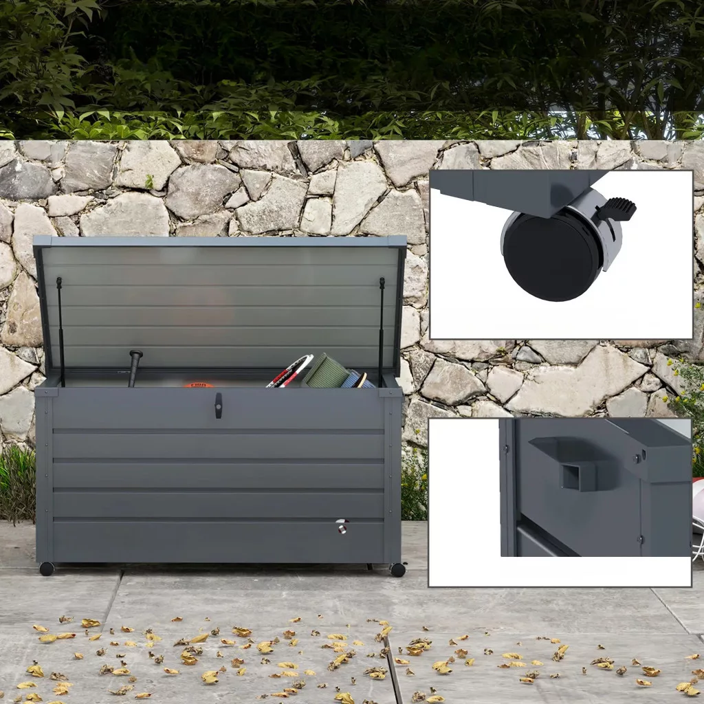 Kerti tároló láda 311L 100x62x65 cm nagyméretű kerekes kerti párnatartó box sötétszürke