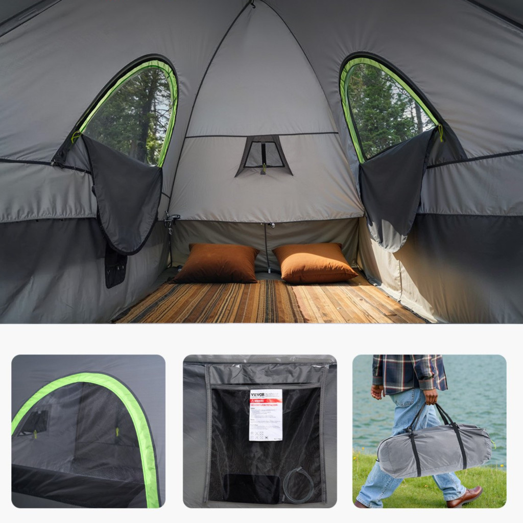 A 230 × 175 × 170 cm méretű pickup sátor elegendő helyet biztosít 2 felnőtt és 1 gyermek számára, így ideális családi kempingezéshez.